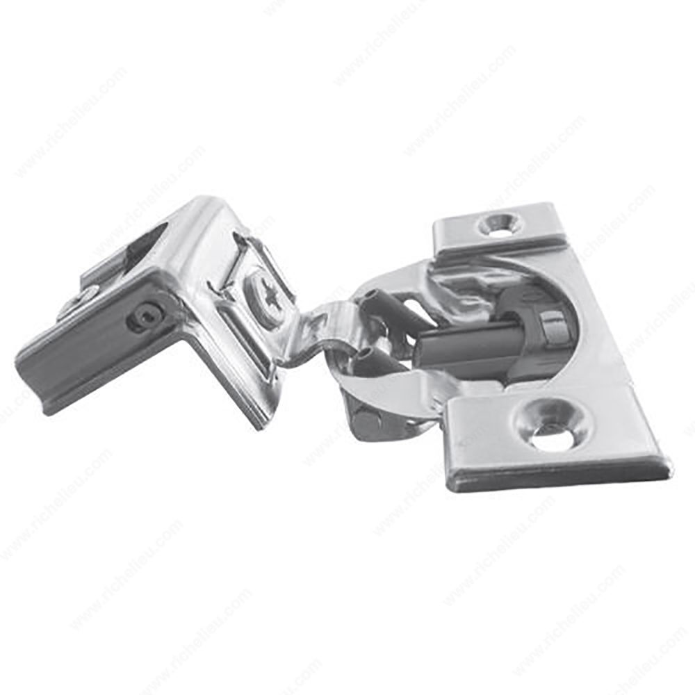 Richelieu COMPACT BLUMOTION 39C Hinges 110 are expertly designed for framed cabinets, ensuring a seamless blend of functionality and convenience. The integrated soft-closing mechanism allows doors to close quietly and gently, enhancing the overall user experience. For smaller or lighter doors, the BLUMOTION feature can be easily deactivated, allowing for the same high-quality movement without compromising performance. These hinges are suitable for cabinets with a minimum thickness of 5/8 inch and support full overlay door positioning, making them versatile for various design needs. With a hinge opening angle of +110°, they provide ample access while maintaining a sleek appearance. Crafted from durable steel with a nickel finish, the COMPACT BLUMOTION hinges are not only robust but also add a modern touch to your cabinetry. Installation is straightforward, utilizing a knock-in fixing type and wraparound mounting for enhanced stability. The milling requirements include a depth of 1/2 inch and a diameter of 1 3/8 inches, ensuring a perfect fit. Each hinge is sold individually, allowing for tailored quantities based on your project specifications. Elevate your cabinetry with the reliable performance and modern design of Richelieu COMPACT BLUMOTION Hinges.