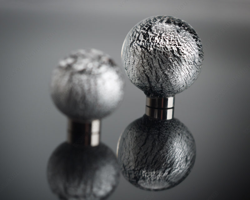 Richelieu 40474090172 Modern Murano Glass Knob is a stunning addition to any contemporary space, elevating your cabinetry with its luxurious handcrafted design. Made from exquisite Murano glass, this round knob exudes sophistication and is perfect for those with discerning tastes. The knob features a brushed nickel base that complements the glass beautifully, available in stylish color options of Gray and Chrome or Black. With a diameter of 1 9/16 inches and a base diameter of 9/16 inches, this knob fits seamlessly into various design schemes. It has a projection of 1 13/16 inches, allowing for easy grip and functionality, while its load capacity of 2.2 lbs ensures durability and reliability. The knob is part of Richelieu's New Collection, showcasing modern pulls and knobs style that enhances both form and function. With an M4 screw included for straightforward installation, upgrading your furniture or cabinetry has never been easier. Whether you are a building professional or a knowledgeable homeowner, the Richelieu Modern Murano Glass Knob brings a touch of opulence that transforms ordinary spaces into extraordinary ones. Choose this elegant piece to make a statement in your home or project today.