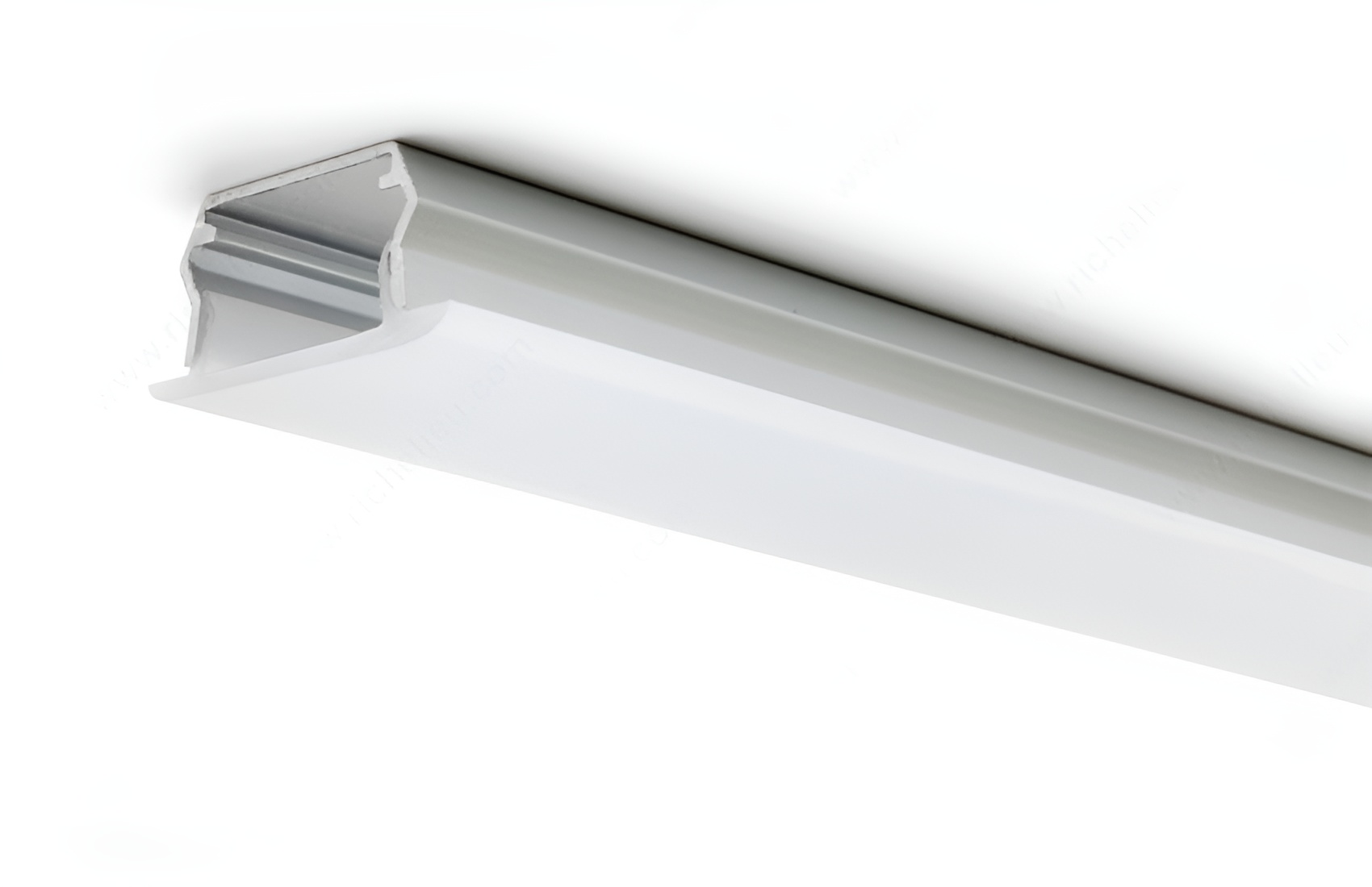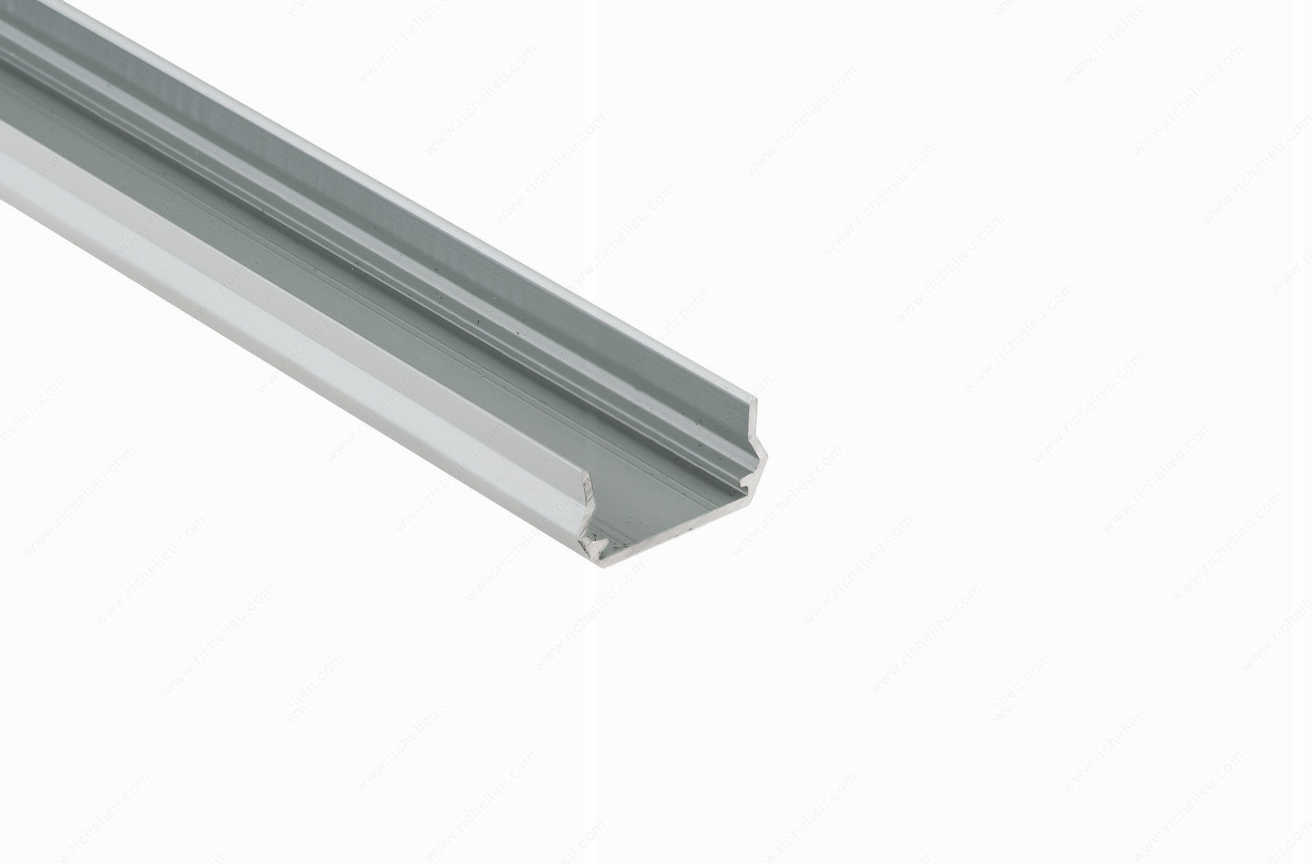 Richelieu 41079096 Icy Profile is an innovative aluminum profile designed to enhance the illumination of interior cabinets with a wide opal lens, perfect for use with LED tape light rolls (sold separately). This recessed aluminum solution provides symmetrical light projection, making it an ideal choice for various applications including kitchens, bedrooms, and offices. With a generous length of 96-1/2 inches, the Icy Profile allows for extensive coverage and flexibility in lighting design. Crafted from durable aluminum, it not only ensures robustness but also supports a contemporary and functional aesthetic that fits seamlessly into any decor. The profile's design accommodates ambient, accent, and functional lighting needs, transforming spaces by enhancing visibility and showcasing stored items beautifully. Installation is straightforward with its recessed mounting capability, ensuring a clean and unobtrusive look. The Icy Profile is well-suited for locations like inside cabinets, under cabinets, closets, or furniture, providing a versatile lighting solution for various environments. Richelieu’s commitment to quality and customization means that this aluminum profile can help you create tailored lighting designs, elevating your interior spaces with ease and style.