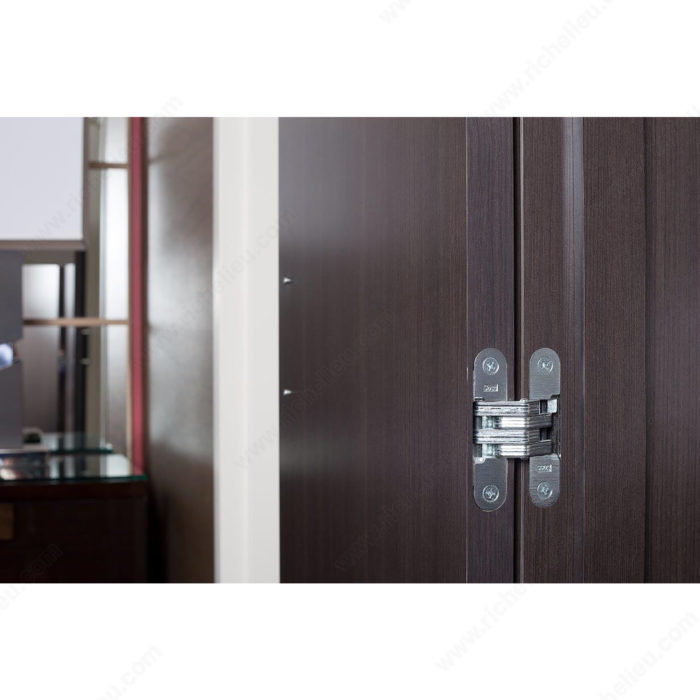 Richelieu 420203140 Concealed Steel Hinge - Model 203 offers a seamless blend of style and functionality, designed for both wood and metal doors. This hinge stands out with its bright chrome finish, providing a modern aesthetic that complements any setting. Its reversible design ensures versatility, making it suitable for various applications. With a cabinet angle of 180°, this hinge allows for full door clearance, enhancing accessibility and ease of use. Installation is straightforward, thanks to the screw-on fixing type, and it is delivered with included screws for immediate setup. The hinge accommodates a minimum door thickness of 3/4 inch, making it a robust choice for standard installations. The hinge features a mortise mounting type, with a leaf body mortise length of 3/4 inch and a depth of 3/16 inch, ensuring a secure fit. The door/jamb gap measures 7/64 inch when closed, minimizing visible gaps for a clean finish. Additionally, the hinge's dimensions-1 3/4 inches in length and 1/2 inch in width-make it an unobtrusive yet essential component of your cabinetry. Choose the Richelieu 420203140 to elevate your projects with a hinge that combines durability, sleek design, and easy installation.