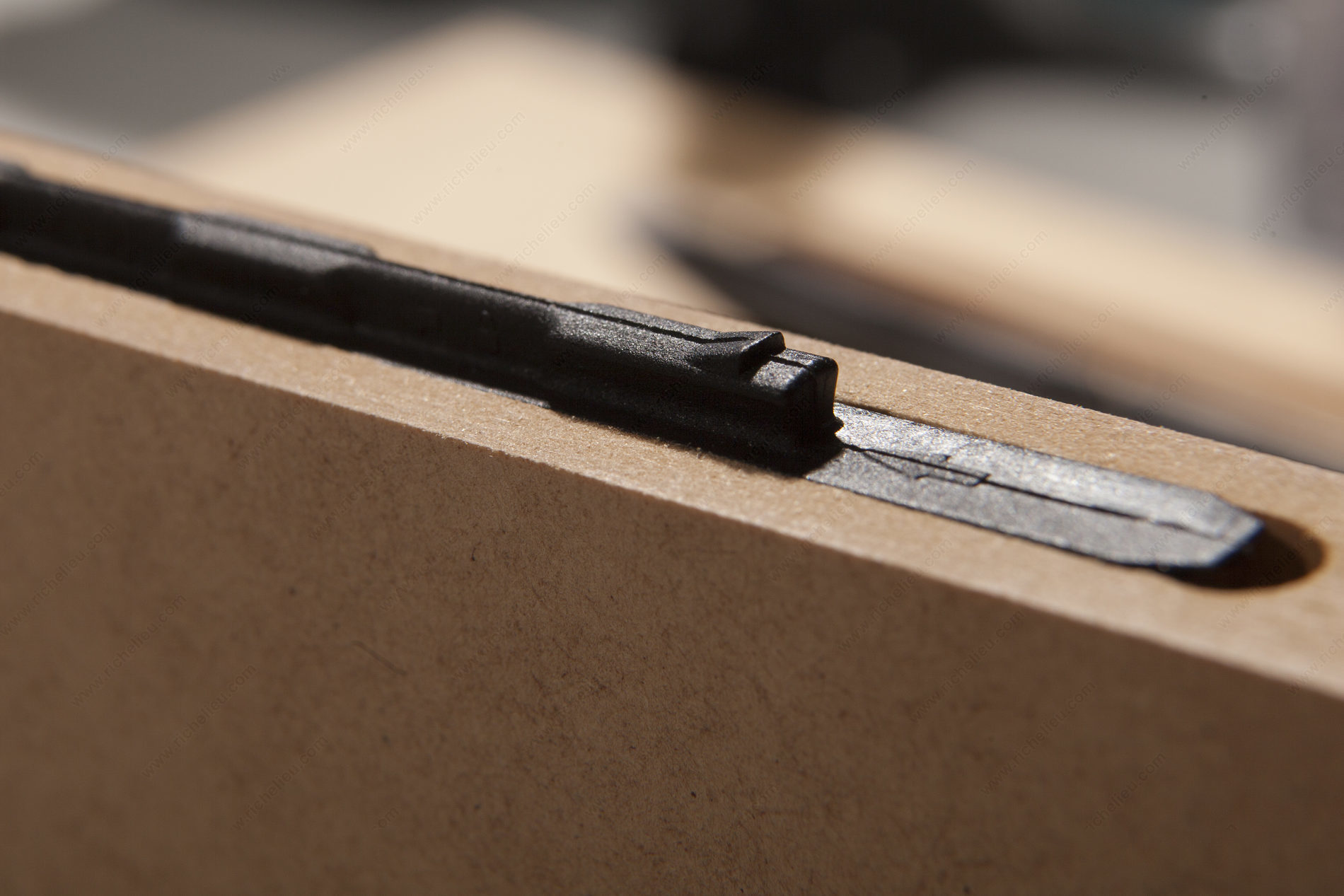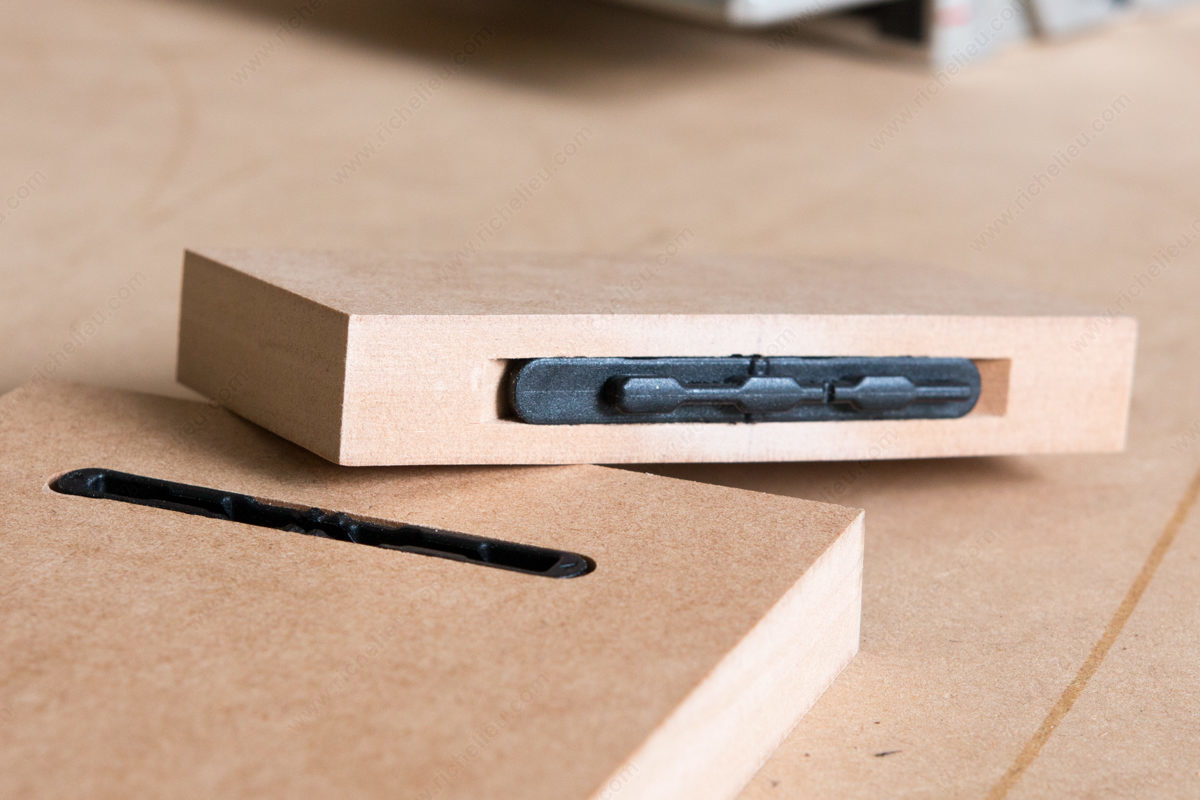 Richelieu 422206090SA20 Striplox Mini 60 Invisible Joiner delivers a sophisticated and efficient joining solution that is perfect for a variety of projects. Designed with versatility in mind, this joiner features a sleek, concealed profile that maintains a clean aesthetic while providing robust strength to your assemblies. Installation is a breeze, requiring only a 7mm router bit to create a groove for seamless integration. The Striplox Mini 60 is particularly advantageous for those who prioritize space-saving solutions, as it can be easily disassembled, making it ideal for flat-packing. This feature allows for straightforward storage and transport, catering to both professionals and DIY enthusiasts alike. Reassembly is just as simple, involving a quick two-step process that supports efficiency during projects. Crafted from durable nylon, this joiner measures 2.36 inches in length, 0.276 inches in width, and stands at an overall height of 0.789 inches. It comes in a sleek black finish and is packaged conveniently in bags of 40 units, ensuring you have plenty at your disposal for multiple applications. For further details regarding load capacity, please refer to the installation document. Trust Richelieu for innovative solutions that blend functionality with style.