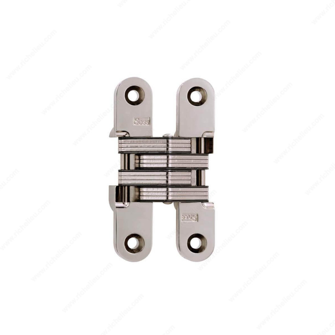Richelieu 429212180 Concealed Steel Hinge - Model 212 offers a sleek and modern solution for your door hardware needs. Designed for durability and superior aesthetics, this hinge is perfect for both wood and metal doors, ensuring a seamless integration into various applications. The hinge features a remarkable 180° opening angle, allowing for maximum accessibility and convenience. Crafted from high-quality steel with a nickel finish, the hinge not only enhances the look of your doors but also guarantees long-lasting performance. With a height of 1 5/64 inches and a width of 3/4 inches, it is engineered to accommodate a minimum door thickness of 1 1/8 inches, providing versatility for different door styles. The mortise mounting type ensures a clean and unobtrusive installation, while the reversible handedness adds to its adaptability. The hinge's specifications include a leaf body mortise length of 2 1/16 inches and a leaf gap of 35/64 inches, ensuring precise fitting and function. With included screws for easy installation, the Richelieu Concealed Steel Hinge Model 212 is an ideal choice for professionals and homeowners seeking reliability and style in their door hardware.