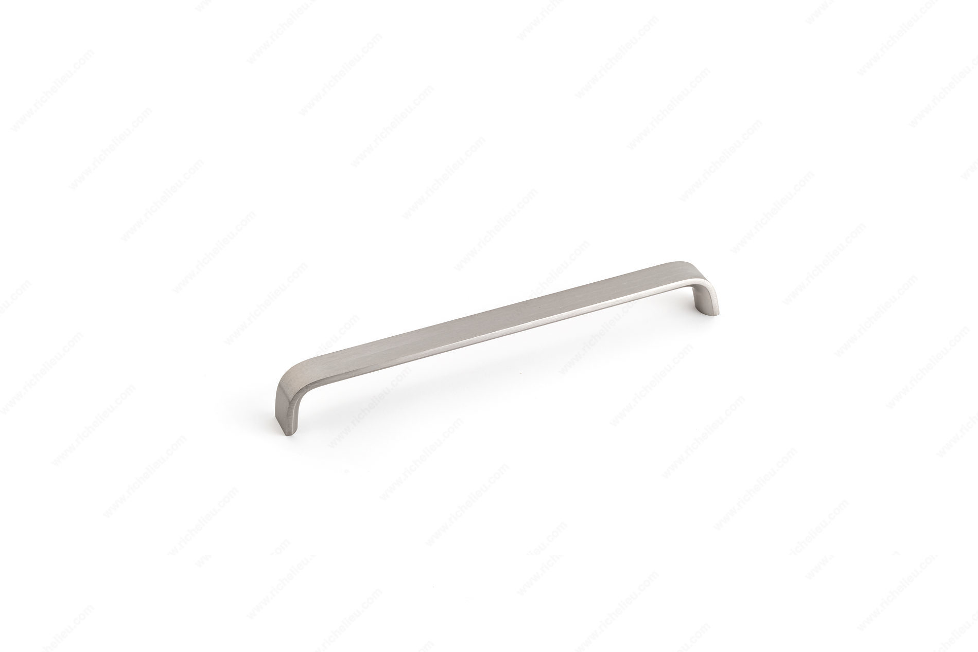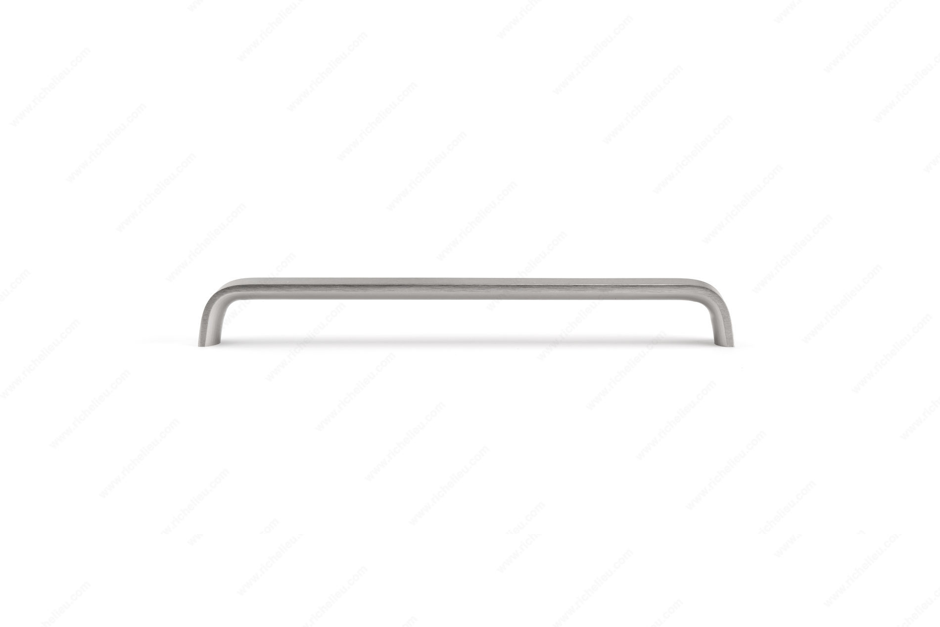 Richelieu 441352195 Modern Aluminum Pull combines contemporary design with practical functionality, making it an ideal choice for refrigerators, pantry doors, wide drawers, or tall cabinets. This appliance pull features a sleek surface and a rounded grip, ensuring a comfortable and stylish user experience. With an overall length of 14 3/8 inches and a center-to-center measurement of 13 7/8 inches, this pull is designed to fit a variety of applications. The modern brushed nickel finish, complemented by gray and chrome accents, adds a touch of elegance to any kitchen or living space. Made from durable aluminum, it promises both longevity and resilience. This pull's dimensions also include a width of 1 3/16 inches and a projection of 1 11/16 inches, making it easy to grasp while maintaining a low profile that won’t obstruct adjacent surfaces. The pull comes packaged individually and includes M4 screws for straightforward installation. Part of the versatile 441 collection, the Richelieu 441352195 Modern Aluminum Pull is not only a hardware accessory but a statement piece that enhances your cabinetry's overall aesthetic. Upgrade your space with this expertly crafted pull that marries style with practicality.