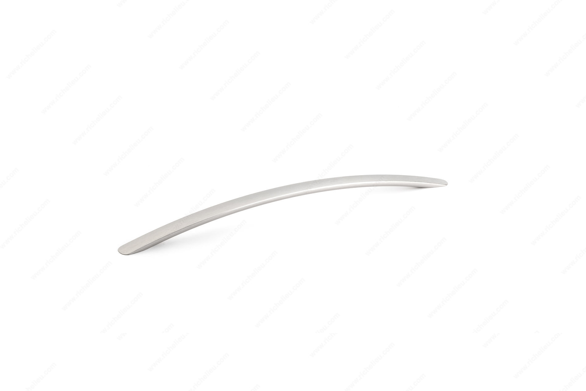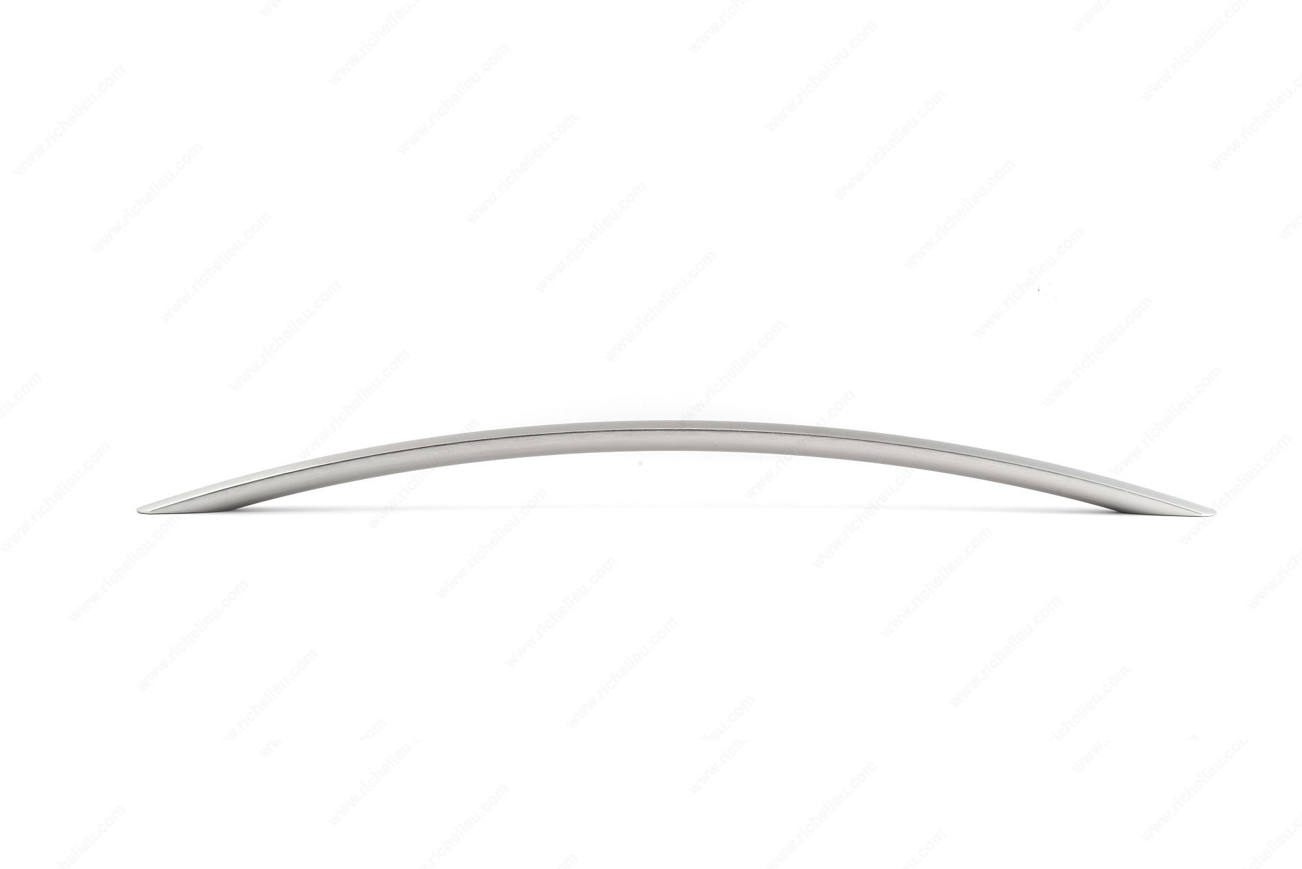 Richelieu 443544195 Modern Aluminum Pull - 443 is an exceptional choice for enhancing the functionality and style of your cabinetry. This arched pull, with an overall length of 25 inches, is perfectly suited for refrigerators, pantry doors, wide drawers, or tall doors, providing both ease of use and a sleek aesthetic. Crafted from durable aluminum, this pull showcases a modern design that complements a variety of interior styles. The brushed nickel finish in a sophisticated gray and chrome color scheme adds a touch of elegance, ensuring it stands out while seamlessly blending with your decor. With a center-to-center measurement of 21 3/8 inches, it is designed to fit standard mounting requirements with ease. Measuring 1 1/4 inches in width and 2 3/32 inches in projection, this pull offers a comfortable grip for opening large cabinet doors or drawers. The product includes M4 screws for straightforward installation, making it a practical choice for both building professionals and discerning homeowners. As part of the complete 443 collection, the Richelieu 443544195 pull not only enhances functionality but also elevates the overall design of your space, making it an ideal addition to any modern kitchen or pantry.