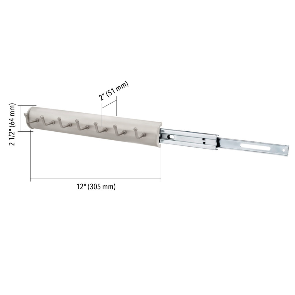 Richelieu 49212184 Decorative Oval Belt Rack offers an elegant solution for organizing your belts while enhancing your space's aesthetics. This decorative sliding belt rack enables effortless access to your favorite accessories, ensuring that you can easily find the perfect belt to complement your outfit. Designed specifically for belt storage, this rack features a sleek matte nickel finish that adds a modern touch to any closet or dressing area. Crafted from durable metal, the construction ensures longevity and reliability, making it an ideal choice for both residential and commercial applications. With seven hooks available, you can neatly hang and display multiple belts, minimizing clutter and streamlining your daily routine. Measuring 12 inches in depth, 2 ½ inches in height, and 2 inches in width, the compact design of the Richelieu Decorative Oval Belt Rack fits seamlessly into various spaces without taking up too much room. The ability to ship via UPS also allows for convenient delivery, making it easy to elevate your organizational game. Invest in the Richelieu 49212184 Decorative Oval Belt Rack for a stylish and practical way to keep your belts organized and accessible, transforming the way you approach daily dressing.