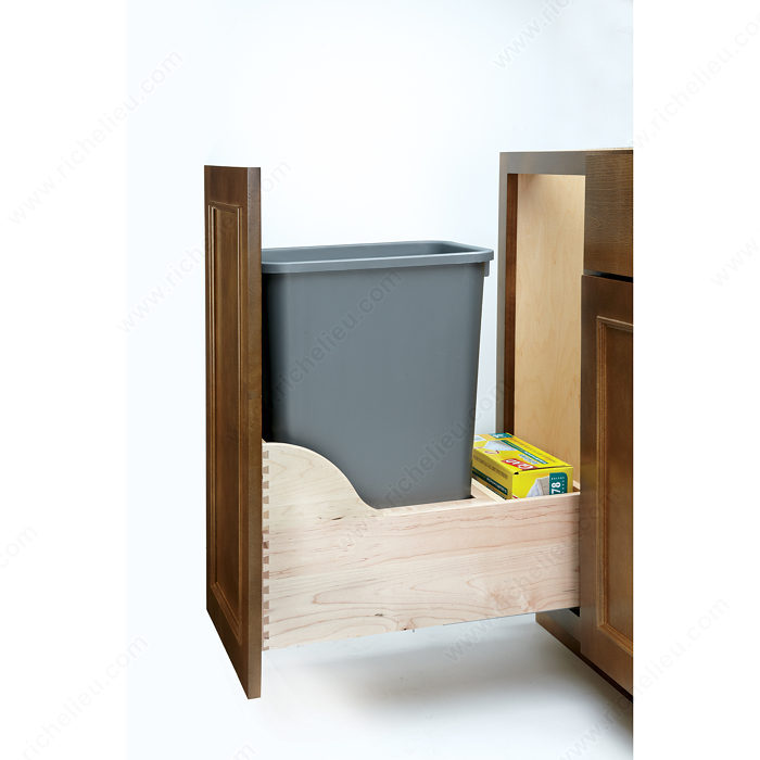 Richelieu 4WCSC1550DM1 Rev-A-Shelf single Bin Recycling Center offers a practical and elegant solution for waste management within your kitchen. This single wood recycling center features a soft-close mechanism, ensuring quiet and smooth operation while enhancing the overall aesthetic of your cabinetry. Designed with both functionality and style in mind, it comes in a modern silver gray and natural maple finish. The recycling center has a generous bin capacity of 50 quarts (47 liters), ideal for households looking to streamline their recycling efforts. It requires a minimum interior space of 21 3/4 inches in depth, 23 5/8 inches in height, and 12 inches in width, making it versatile enough to fit into various kitchen designs. With a robust load rating of 110 pounds, it is constructed from high-quality wood and polymer materials, ensuring durability and reliability over time. This product ships via UPS, making it convenient to order and receive. The integrated Soft-Motion System allows for gentle closing, preventing slamming and promoting a serene kitchen environment. The Richelieu 4WCSC1550DM1 is not just a practical addition to your kitchen; it is a stylish upgrade that supports sustainable living.
