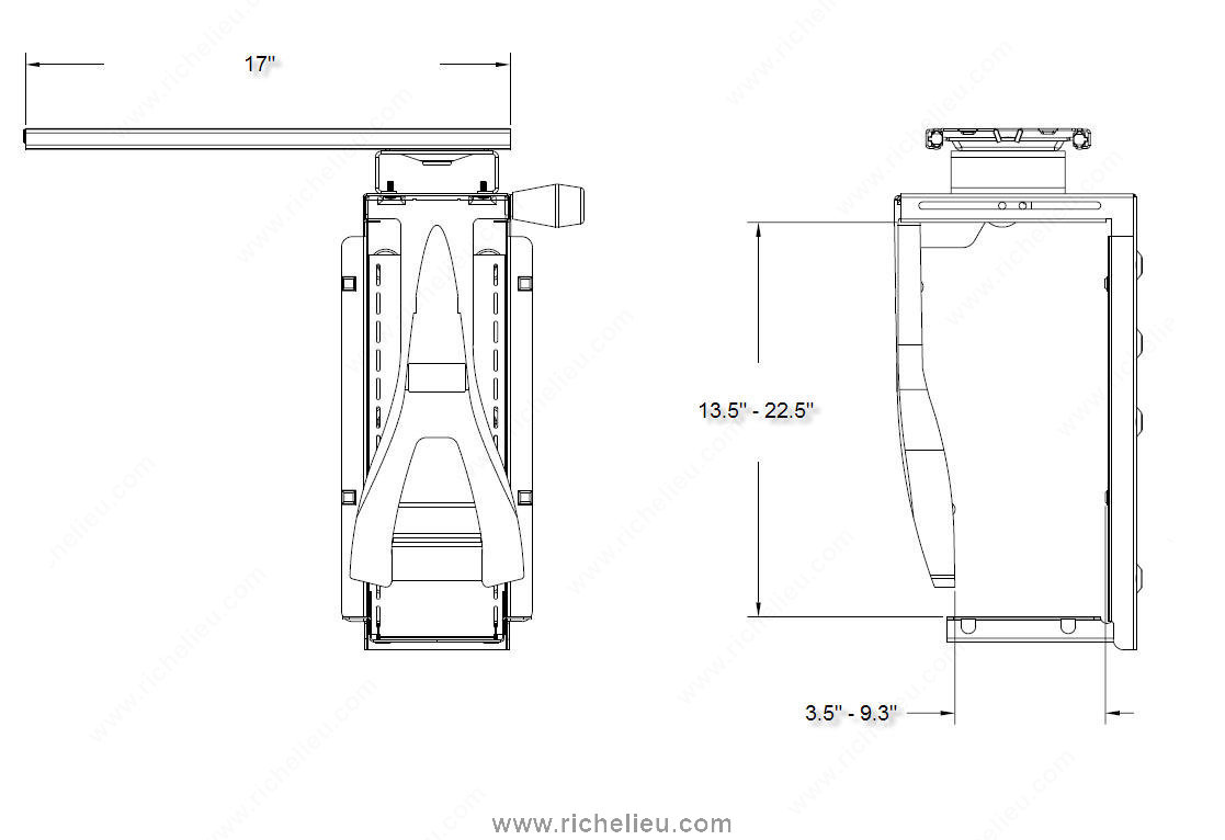 Overall Dimensions - Height: 13.5 to 22.5 in