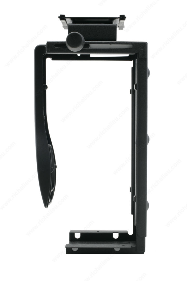 Richelieu 500735190 Non-Locking Slide Swivel CPU Holder is engineered for durability and functionality, making it an ideal choice for professional environments. Constructed from robust steel, this CPU holder offers an impressive load capacity of 85 lbs, ensuring that your computer equipment remains securely in place. The sleek black finish adds a modern touch, while the design promotes a clutter-free workspace. With an adjustable depth ranging from 14.8 to 22.3 inches and an overall height of 13.5 to 22.5 inches, this holder accommodates various CPU sizes, making it versatile for different setups. The 17-inch glide track allows for smooth sliding and easy access, enhancing your workflow efficiency. Additionally, the swivel range of 360° provides ultimate maneuverability, enabling you to position your CPU for optimal cable management and accessibility. The holder also meets ANSI/BIFMA standards, ensuring compliance with industry regulations. For added stability, this model features increased clamping force, providing peace of mind that your equipment is secure. Whether you’re outfitting a new office or upgrading your home workspace, the Richelieu 500735190 Non-Locking Slide Swivel CPU Holder combines practicality with a sleek aesthetic to enhance any environment.