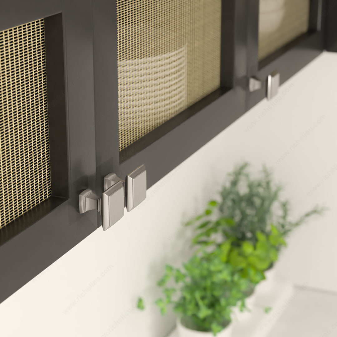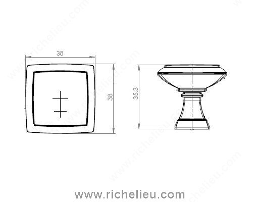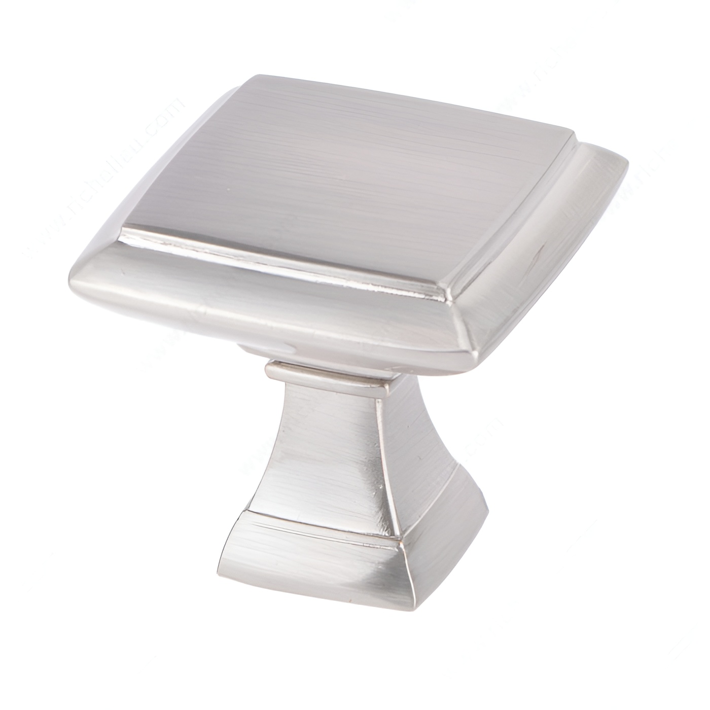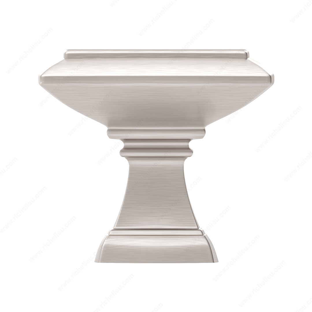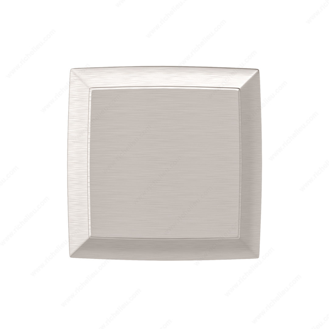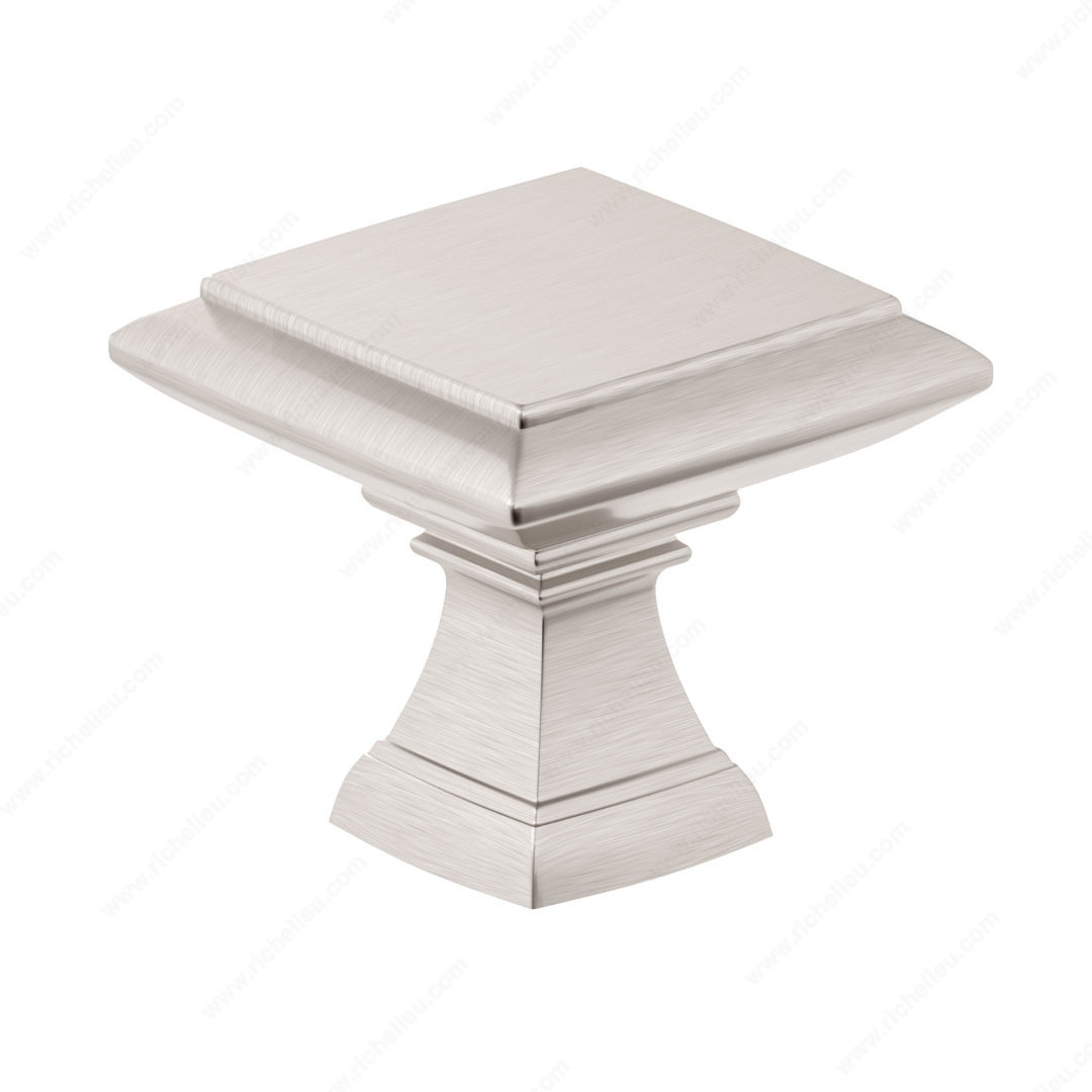 Richelieu 501238195 Transitional Metal Knob - 502 offers a timeless design that enhances the aesthetic of furniture and cabinetry with its classic square shape. The knob features an elegant engraved stepped base, making it a striking choice for any transitional space. Crafted from durable zamak, this knob ensures longevity in both residential and commercial applications. With overall dimensions of 1 ½ inches in length and width, and a projection of 1 3/8 inches, it fits comfortably in hand while maintaining a stylish profile. The brushed nickel finish, paired with the gray and chrome color scheme, adds a modern touch that complements various design styles. This knob is not just visually appealing; it also includes an M4 screw for easy installation, streamlining the renovation or building process. Designed as part of the complete collection model 5021/5012, it allows for cohesive design across multiple fixtures, providing continuity in your space. Richelieu's commitment to quality ensures that this knob will withstand everyday use while retaining its stunning appearance. Whether you're updating a kitchen, bathroom, or furniture piece, the Richelieu 501238195 knob is a perfect choice for a touch of sophistication.