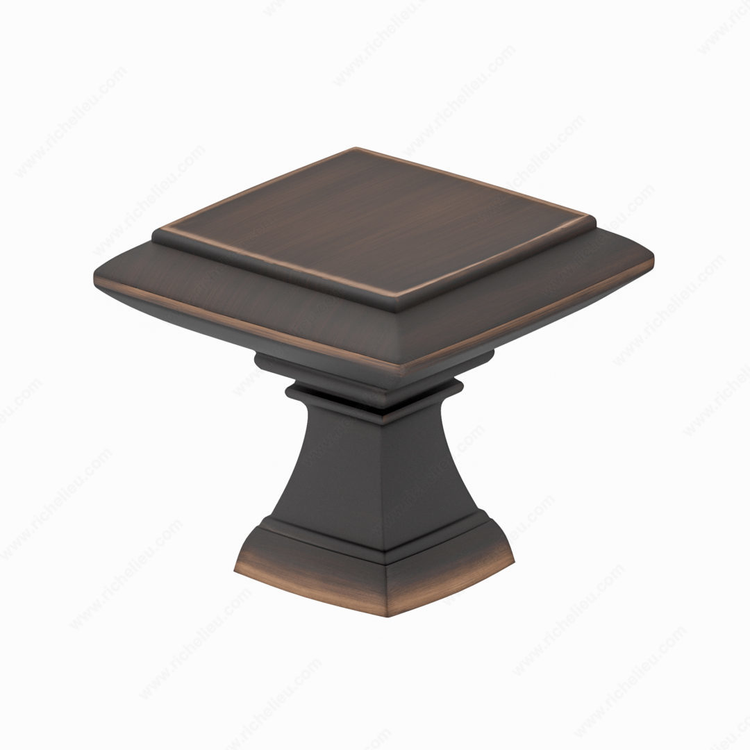 Richelieu 501238BORB Transitional Metal Knob is a timeless addition to any furniture or cabinetry design. Crafted from durable zamak, this square knob features a beautifully engraved stepped base that adds a touch of elegance and sophistication, making it an impactful statement piece. The brushed oil-rubbed bronze finish not only enhances its aesthetic appeal but also provides durability, ensuring it withstands daily use while maintaining its luxurious look. Measuring 1 ½ inches in length and width, with a projection of 1 3/8 inches, this knob is perfectly sized for comfortable grip and functionality. Its transitional style seamlessly blends with various design themes, making it versatile enough for both contemporary and traditional interiors. The knob is compatible with the complete collection model 5021/5012, allowing for cohesive design throughout your space. Installation is straightforward, as each knob comes with an M4 screw included, ensuring a secure fit. Whether you're updating kitchen cabinets, bathroom vanities, or furniture pieces, the Richelieu 501238BORB knob will elevate the overall look of your project. Available for convenient UPS shipping, this knob is an excellent choice for building professionals and discerning homeowners alike.