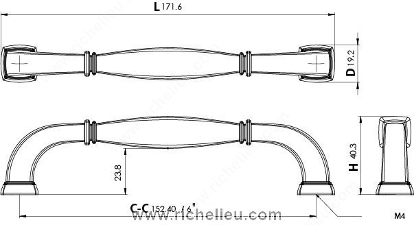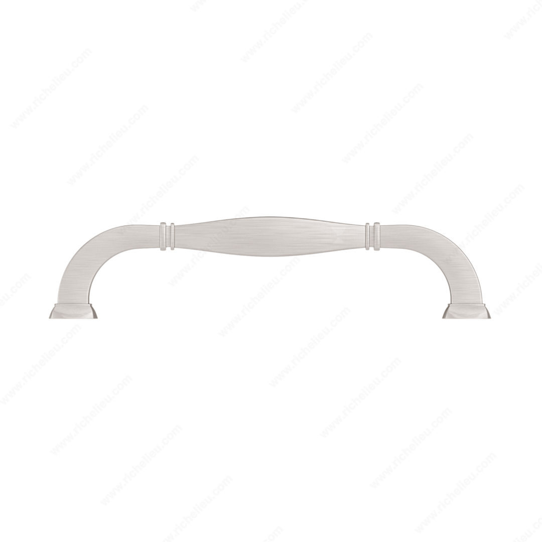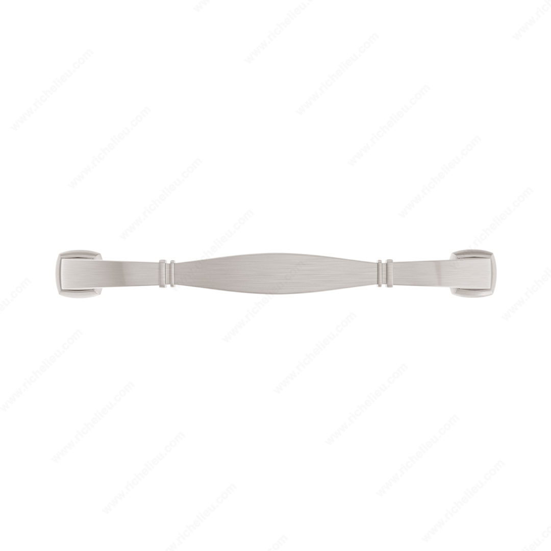 Richelieu 502106195 Transitional Metal Pull is a striking choice for enhancing the aesthetic of your furniture and cabinetry. This sturdy pull features banded indentations at either end and stepped bases, delivering a statement-making design that seamlessly blends form and function. Crafted from durable zamak material, it ensures longevity while adding a touch of sophistication to any space. With a center-to-center measurement of 6 inches, this pull is designed for easy installation and compatibility with various cabinetry styles. The brushed nickel finish, complemented by gray and chrome accents, provides a modern twist that can elevate both contemporary and transitional interiors. The overall dimensions of the pull measure 6 25/32 inches in length, 3/4 inch in width, and a projection of 1 9/16 inches, making it an ideal choice for those seeking a functional yet stylish hardware solution. Each pull comes with M4 screws included for straightforward installation. As part of the complete Richelieu collection, including models 5021 and 5012, this transitional pull not only enhances your design vision but also offers reliability in performance. Transform your cabinetry with the timeless elegance of Richelieu’s transitional metal pull.