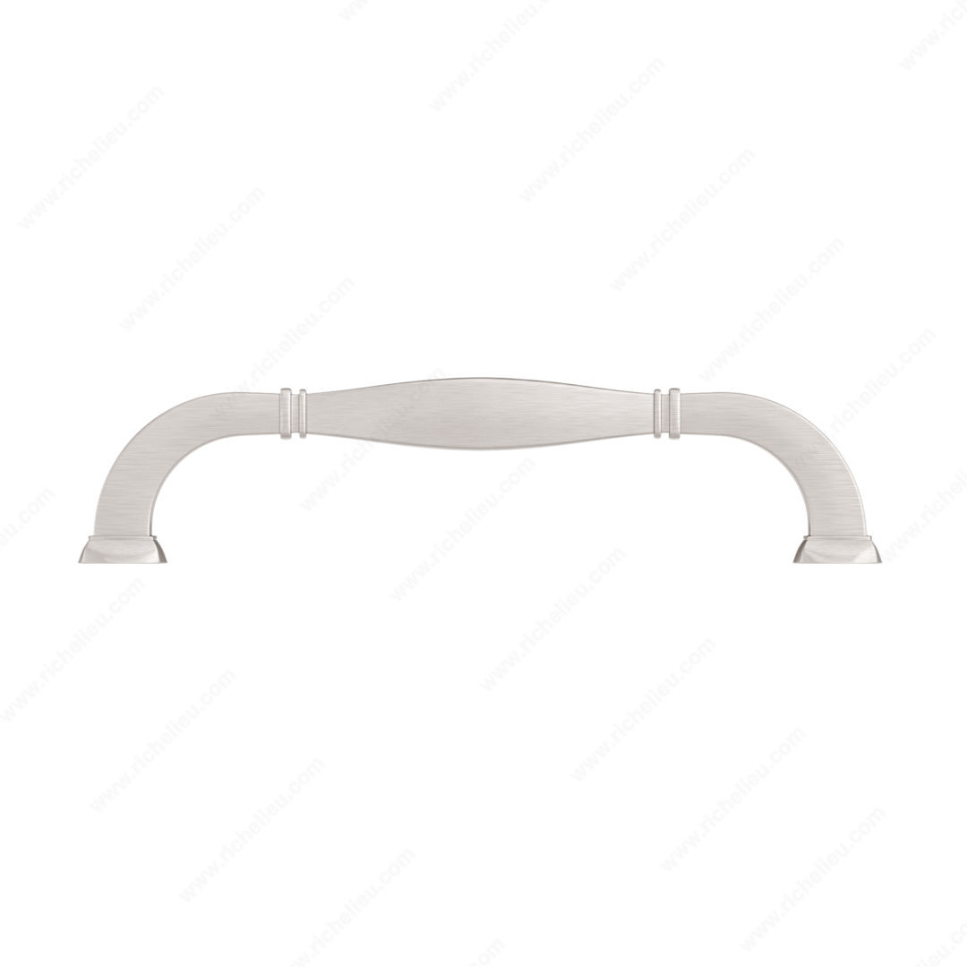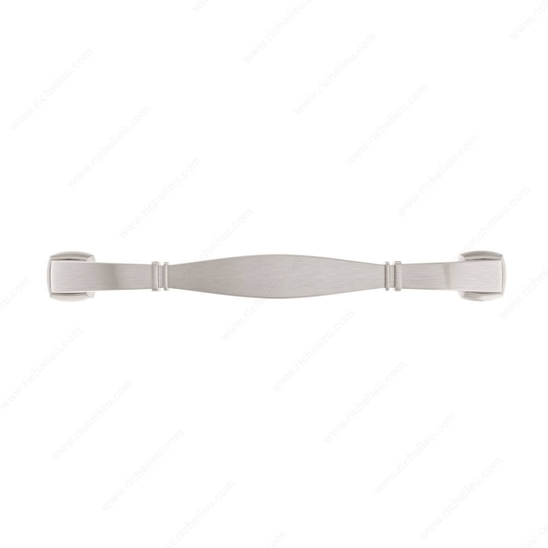 Richelieu 502108195 Transitional Metal Pull offers a striking combination of style and functionality, designed to enhance your furniture and cabinetry. This sturdy pull features banded indentations at either end, complemented by stepped bases, creating an impactful statement that elevates any space. Crafted from durable Zamak, it ensures long-lasting performance and reliability. With a center-to-center measurement of 8 inches, this pull is perfectly sized for a range of applications, whether in kitchens, bathrooms, or living areas. The brushed nickel finish adds a modern touch, while the gray and chrome color scheme provides versatility to suit various design aesthetics. Measuring 9 3/32 inches in overall length and 2 7/32 inches in projection, the pull is designed for comfortable use and easy integration into your existing décor. Included with your purchase are M6 screws to facilitate straightforward installation. The Richelieu 5021 collection complements this pull, allowing for coordinated design throughout your space. Ship via UPS for convenience, making it easy to enhance your home or professional project with this exceptional piece. Choose the Richelieu 502108195 Transitional Metal Pull for a perfect blend of contemporary design and practical functionality.