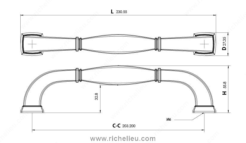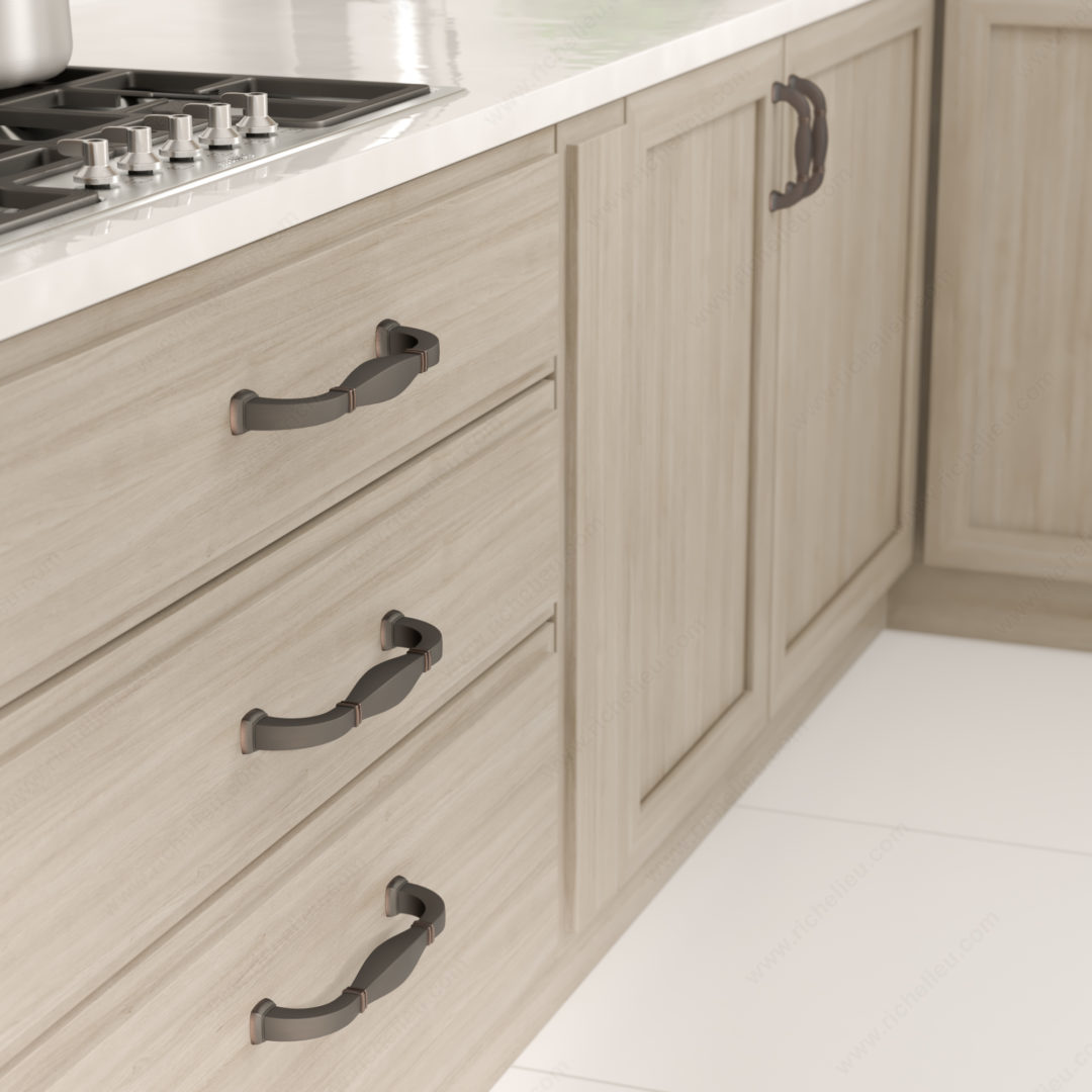 Richelieu 502108BORB Transitional Metal Pull is a remarkable addition for enhancing the aesthetic of furniture and cabinetry. Crafted from durable Zamak, this pull features a sophisticated brushed oil-rubbed bronze finish that beautifully integrates with a variety of design styles. The pull measures an overall length of 9 3/32 inches, with a projection of 2 7/32 inches, making it both functional and visually appealing. The banded indentations at either end, along with the stepped bases, create a striking look that elevates any space while ensuring a comfortable grip. This transitional style complements both modern and traditional interiors, making it a versatile choice for kitchen or bathroom cabinetry. With a center-to-center measurement of 8 inches, the 502108BORB pull is easy to install, as it comes with M6 screws included. The combination of brown and bronze hues adds warmth and elegance, making it a perfect fit for various color schemes. Part of the complete 5021 collection, this pull not only stands out on its own but also coordinates beautifully with other pieces in the range. Experience the sophistication and durability of Richelieu’s transitional metal pull and transform your cabinetry today.