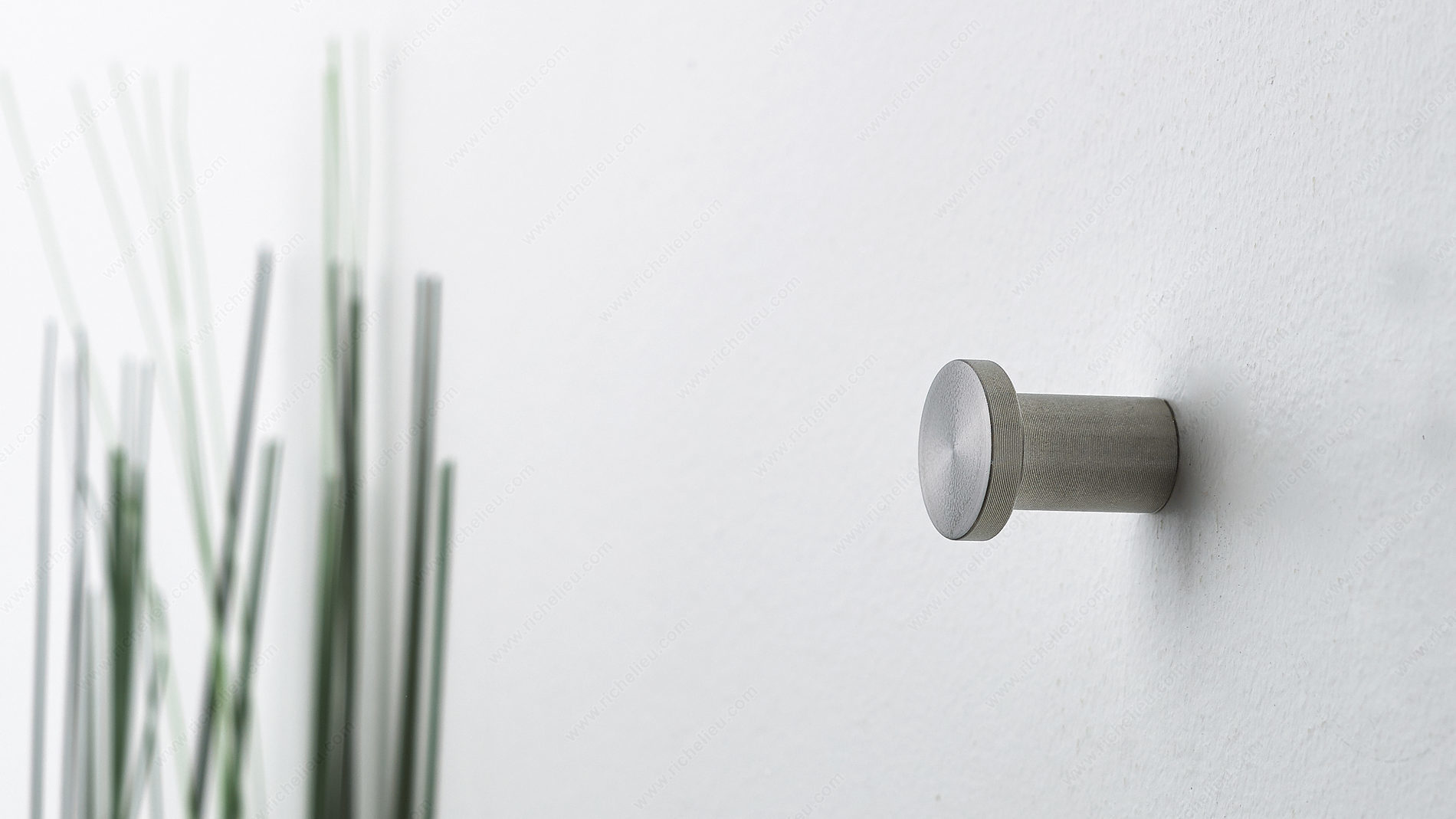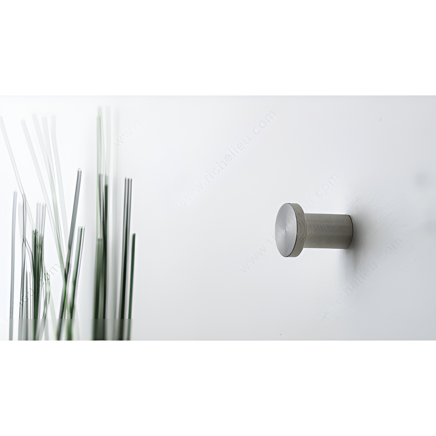 Richelieu 51124170AB Modern Stainless Steel Hook - 51124 seamlessly blends functionality with contemporary design. Crafted from durable 304 stainless steel, this simple hook showcases clean lines and a sleek aesthetic, making it an ideal addition to modern interiors. Its antibacterial finish ensures hygiene, making it perfect for spaces where cleanliness is paramount. Measuring 31/32 inches in diameter, height, and width, this hook has a compact footprint that allows it to fit neatly into any room without overwhelming the decor. With a projection of 1 3/16 inches, it provides ample space for hanging items while maintaining a low profile. Designed to support a load capacity of up to 11 pounds, it is versatile enough for various applications, whether in the kitchen, bathroom, or hallway. The hook is packaged in a convenient bag, complete with #6 screws for easy installation. Available in a stylish gray and chrome finish, it complements a wide range of color schemes and design styles. Ship via UPS for added convenience. Elevate your space with the understated elegance of the Richelieu 51124170AB Modern Stainless Steel Hook, where simplicity meets functionality.