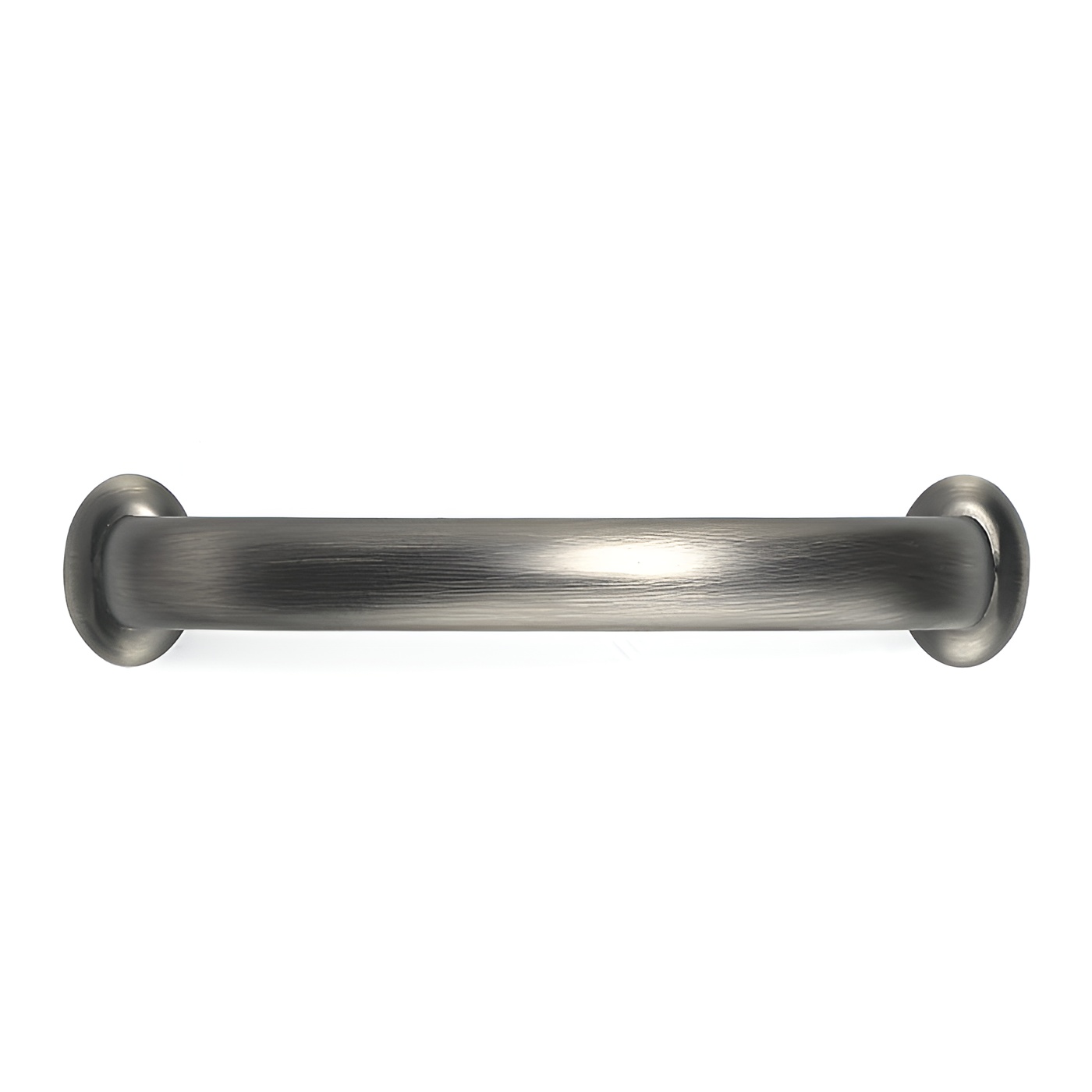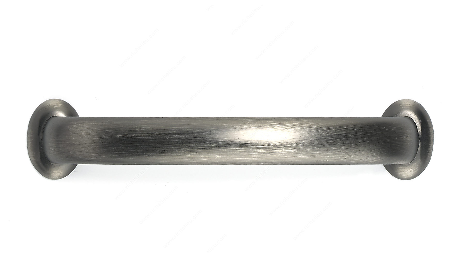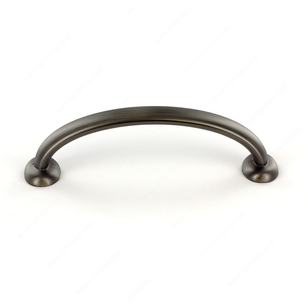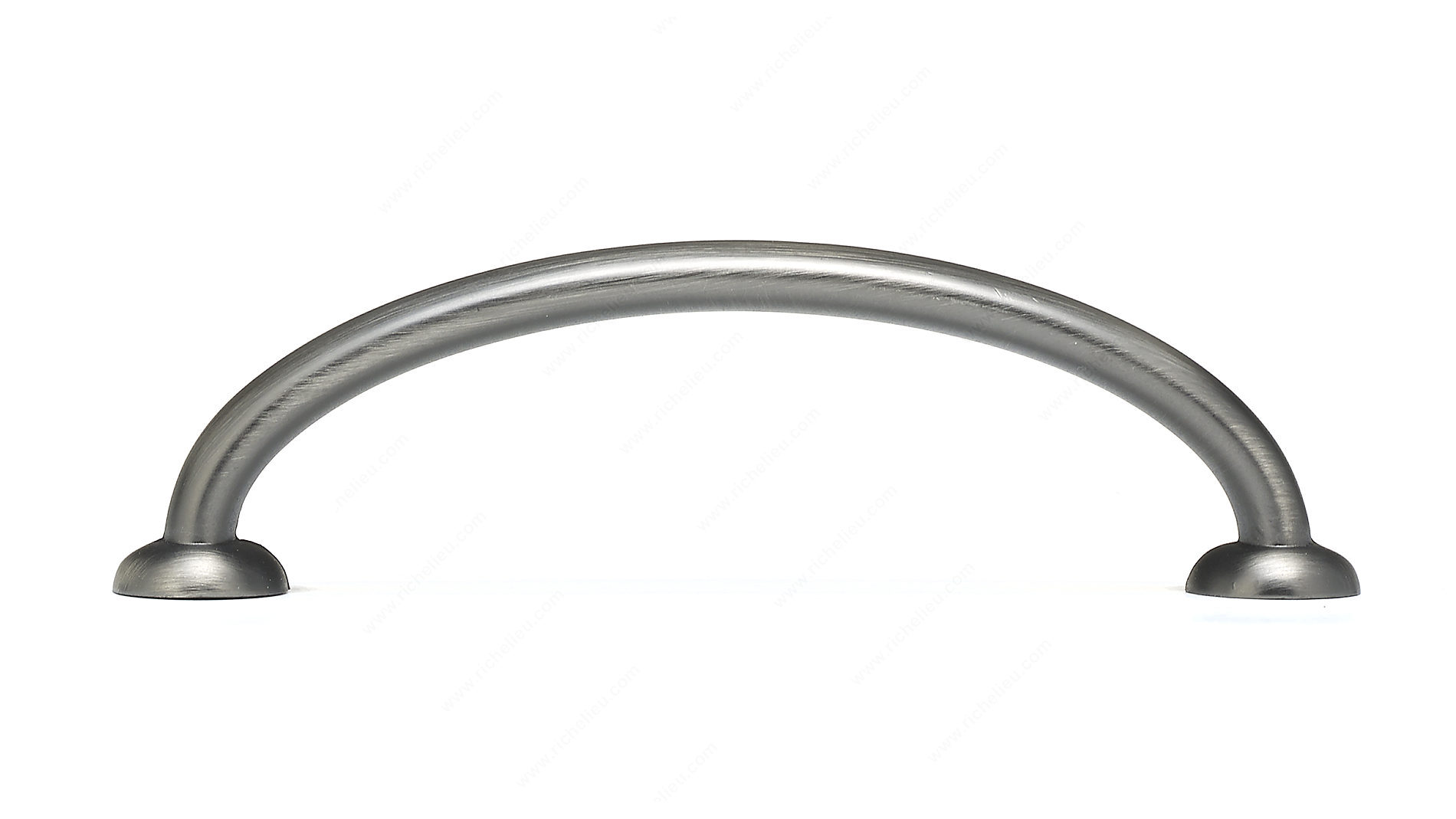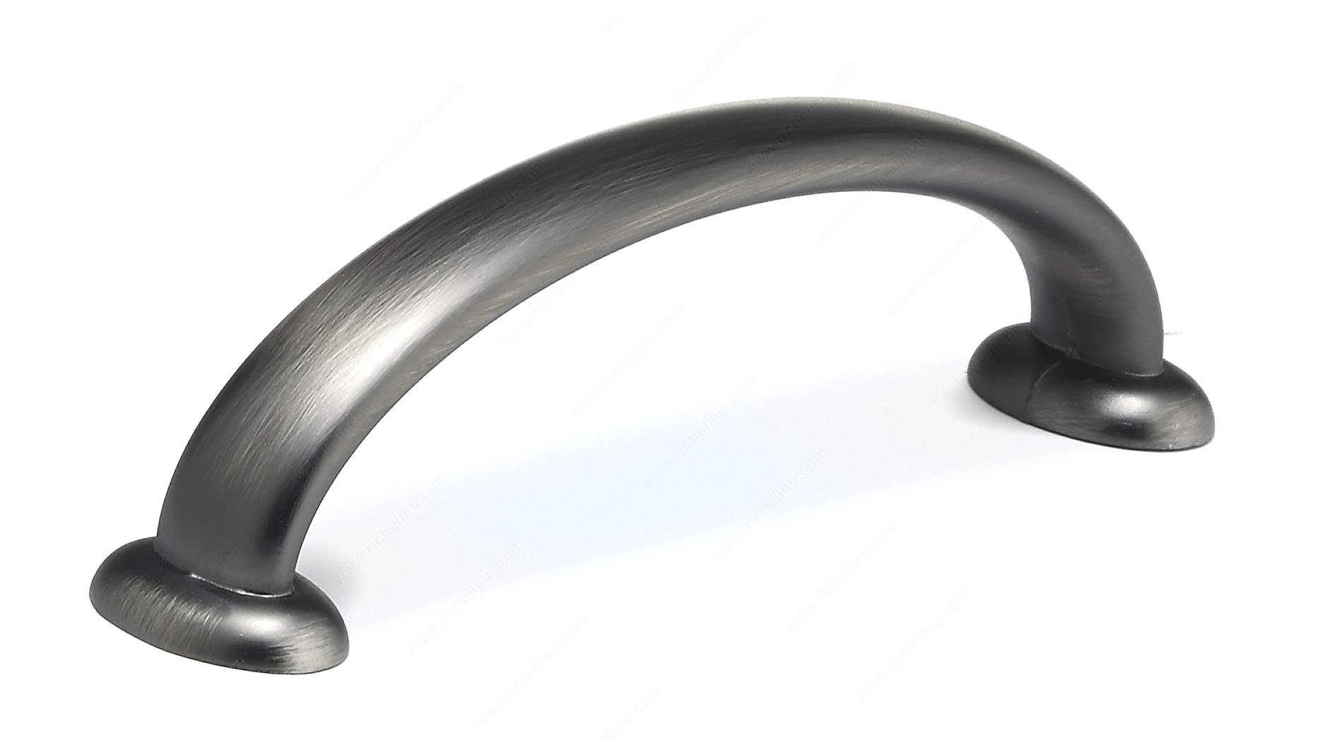 Richelieu 5127896143 Traditional Metal Pull - 5127 offers a classic touch to your furniture or cabinetry with its elegantly designed gently arched bow profile. The pull features a flared base at each end, enhancing both aesthetics and grip, making it a stylish yet functional addition to various interiors. Crafted from durable zamak, this pull showcases an antique nickel finish that adds a timeless elegance while ensuring long-lasting performance. Measuring 4 13/32 inches in overall length and with a center-to-center measurement of 3 25/32 inches, it is ideally sized for a range of cabinetry and furniture types. The overall projection of 1 1/4 inches makes it easy to grasp, while the width of 29/32 inches maintains a sleek appearance. Available in a sophisticated gray and chrome color scheme, the Richelieu Traditional Metal Pull seamlessly integrates into both modern and traditional settings. Installation is hassle-free with included 8/32 inch screws, allowing for a quick upgrade to your space. Enhance your project with this exquisite hardware that combines style, functionality, and quality craftsmanship.