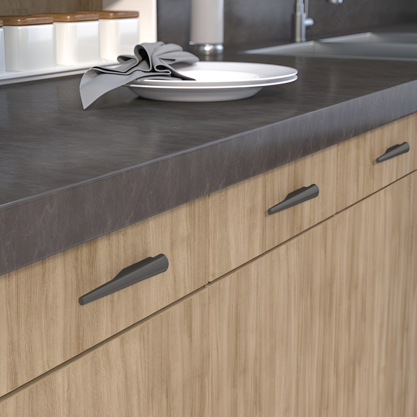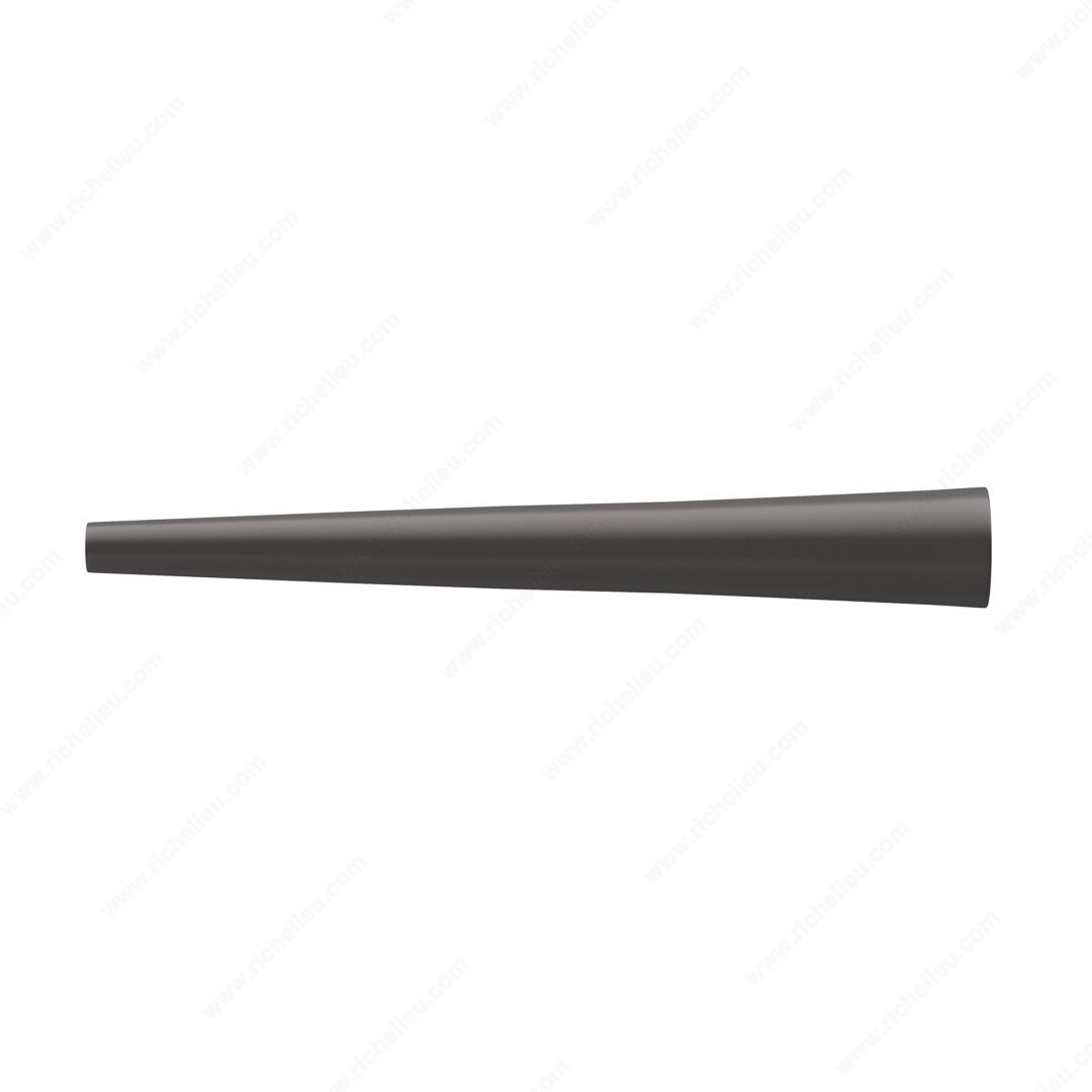 Richelieu 5180032905 Modern Metal Pull - 5180 adds a touch of sophistication to any furniture or cabinetry with its sleek and contemporary design. The tapered end of this tubular pull not only enhances visual appeal but also offers a comfortable grip, making it a practical choice for everyday use. Crafted from durable zamak, this pull is built to withstand the rigors of daily life while maintaining its striking graphite finish. With an overall length of 5 1/8 inches and a width of 3/4 inch, this modern pull is designed for versatility, fitting seamlessly into various design themes. The center-to-center measurement of 1 1/4 inches ensures compatibility with standard cabinetry, while the 27/32 inch projection provides ample space for easy access. Each pull comes with the necessary M4 screws included for straightforward installation. Available in a classic black color, the Richelieu 5180032905 complements all collections within the 5180 series, making it an ideal selection for cohesive design. Whether you’re outfitting a kitchen, bathroom, or living space, this modern metal pull will elevate your cabinetry with its elegant flair and functional design. Perfect for professionals and discerning homeowners alike, it embodies quality and style in one refined package.