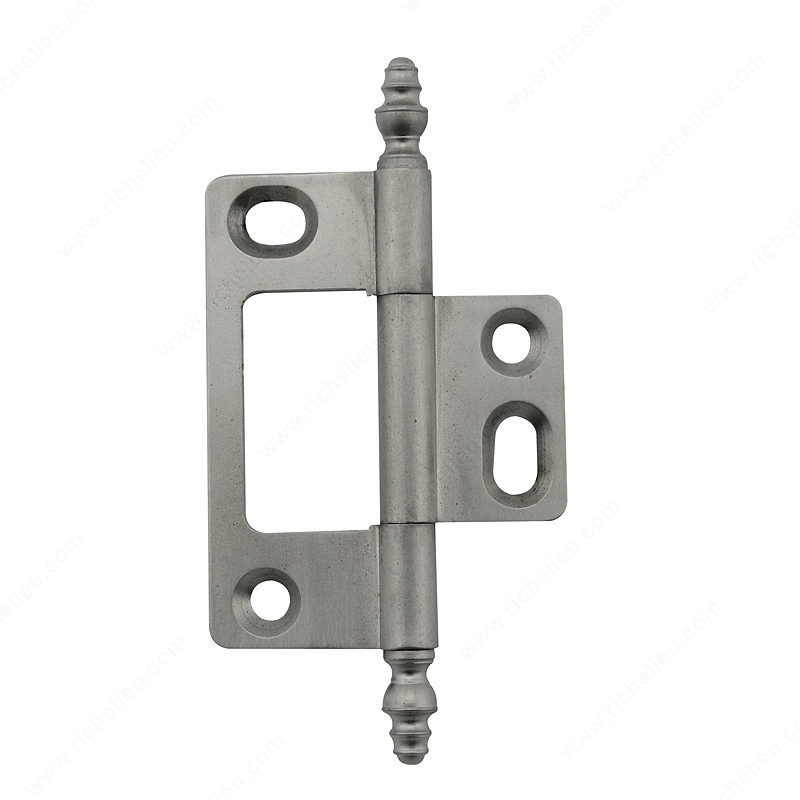 Richelieu 5201195 Classic Brass Bifold Hinge - 5201 offers a harmonious blend of functionality and elegance, making it an ideal choice for both decorative and practical applications. Crafted from high-quality brass, this hinge features a stylish urn finial design that enhances the overall aesthetic of your bifold doors. With dimensions of 2 15/16 inches in height and 1 15/32 inches in width, it provides a sleek profile that complements a variety of interior styles. The brushed nickel finish adds a contemporary touch while ensuring durability and resistance to wear over time. Weighing only 3/32 inches in thickness, this hinge is designed for seamless integration, allowing smooth operation without compromising strength. Each hinge comes with wood screws included, making installation straightforward and hassle-free. Richelieu's decorative hinges, such as models 5201, 5202, and 5203, can be effortlessly paired with European hinges to create a cohesive look throughout your space. Whether you are a building professional or a knowledgeable homeowner, the Classic Brass Bifold Hinge combines aesthetic appeal with reliable performance, making it a must-have for any renovation or new construction project. Enjoy the perfect balance of style and utility with this exceptional hinge from Richelieu.