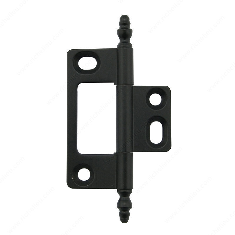 Richelieu 5201900 Classic Brass Bifold Hinge - 5201 combines functionality with timeless elegance, making it an excellent choice for both decorative and practical applications. Crafted from high-quality brass, this hinge features a classic design that complements a variety of interiors. Its sleek black finish adds a touch of sophistication while ensuring durability. Measuring 2 15/16 inches in height and 1 15/32 inches in width, the hinge is designed to fit seamlessly into bifold doors, enhancing their aesthetic appeal. The urn finial style provides an intricate detail that elevates the overall look of your doors. With a thickness of 3/32 inches, the hinge maintains a sturdy structure while allowing smooth operation. Installation is straightforward, as each hinge comes with wood screws included, ensuring you have everything needed to enhance your cabinetry or bifold doors. The versatility of the Richelieu 5201900 allows it to be used alongside European hinges, offering a cohesive look throughout your project. Whether you're a building professional or a discerning homeowner, this decorative hinge is an exceptional choice to add both style and efficiency to your space. Choose the Richelieu 5201900 Classic Brass Bifold Hinge for a perfect blend of form and function.