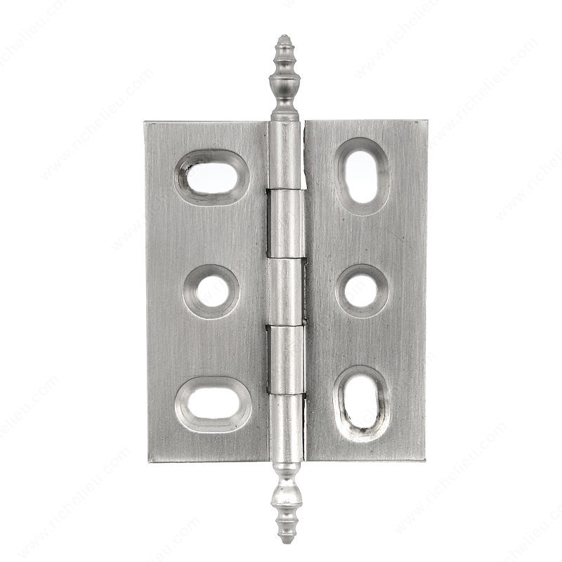Richelieu 53101195 Classic Brass Butt Hinge is a blend of elegance and functionality, designed to enhance both traditional and modern spaces. Crafted from high-quality brass, this hinge features a striking brushed nickel finish that not only adds a sophisticated touch but also offers durability and resistance to wear. With overall dimensions of 1 19/32 inches in width and a height of 1 31/32 inches, it is perfectly sized for a variety of applications, ensuring a seamless fit. The hinge's thickness measures 3/32 inches and has a diameter of 3/16 inches, making it a reliable choice for both light and heavy doors. It is recommended for decorative applications, showcasing an urn-type tip that complements various design aesthetics. Installation is hassle-free, as it comes with wood screws included for easy mounting. This product is ideal for building professionals and knowledgeable homeowners seeking quality hardware that combines style with practicality. The Richelieu 53101195 Classic Brass Butt Hinge can ship via UPS, making it convenient to add this essential piece of hardware to your project. Elevate your door fittings with this stylish and functional hinge that stands the test of time.