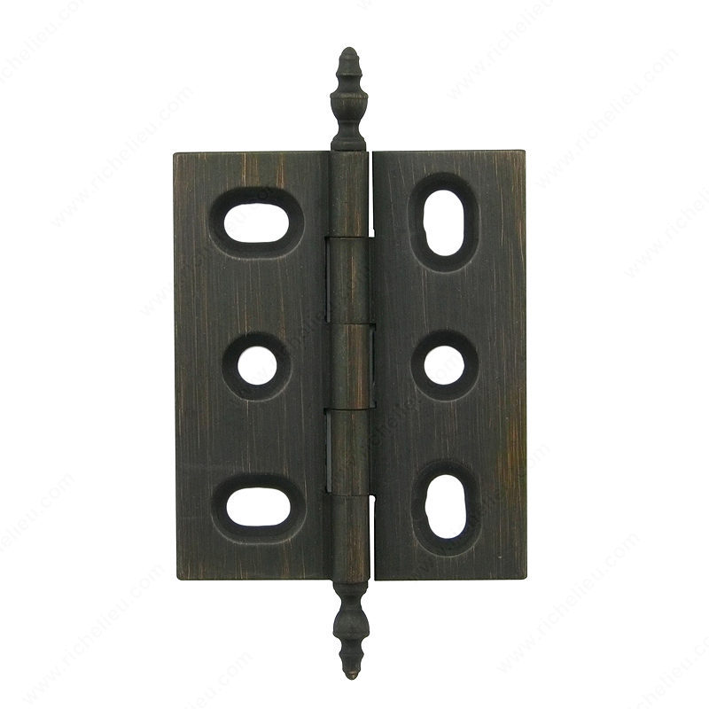 Richelieu 53101BORB Classic Brass Butt Hinge combines timeless elegance with robust functionality, making it an ideal choice for those seeking a sophisticated touch in their architectural projects. Crafted from high-quality brass, this hinge features a stunning brushed oil-rubbed bronze finish (BORB) that not only enhances its aesthetic appeal but also offers durability and resistance to wear. With a height of 1 31/32 inches and an overall width of 1 19/32 inches, this hinge is designed to accommodate a variety of applications, particularly as a deco hinge. The urn-type tip adds a classic element that complements both traditional and modern designs. It is engineered with a thickness of 3/32 inches and a diameter of 3/16 inches, ensuring stability and reliability in operation. Installation is straightforward, as the hinge comes with wood screws included, allowing for quick mounting on your doors or cabinetry. Whether you're a building professional or a knowledgeable homeowner, the Richelieu 53101BORB is a practical choice that merges style with performance, enhancing the overall aesthetic of your spaces while providing seamless functionality. Perfect for renovations or new builds, this hinge will elevate your projects to the next level.
