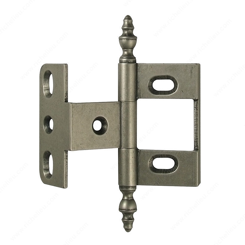 Richelieu 54101142 Classic Metal Hinge - 5410 offers a blend of traditional elegance and robust functionality, designed for discerning building professionals and sophisticated homeowners alike. Crafted from high-quality brass and finished in a refined pewter, this hinge not only enhances the aesthetic appeal of your cabinetry and doors but also ensures durability and reliability. With overall dimensions of 3 5/8 inches in height and 2 1/4 inches in width, the hinge is engineered to accommodate blade thicknesses of 3/32 inches, making it ideal for various applications. The unique steeple and minaret finial styles add an ornate touch, elevating the design of any project. This traditional enveloping hinge is easy to install, with wood screws included, providing a seamless integration into your woodworking endeavors. Its classic design complements a range of interior styles, from vintage to modern, making it a versatile choice for any renovation or new construction. Whether you're outfitting a kitchen, bathroom, or other living spaces, the Richelieu 54101142 ensures that functionality meets elegance. With the convenience of UPS shipping, you can easily incorporate this exceptional hinge into your next project, ensuring quality and style every step of the way.