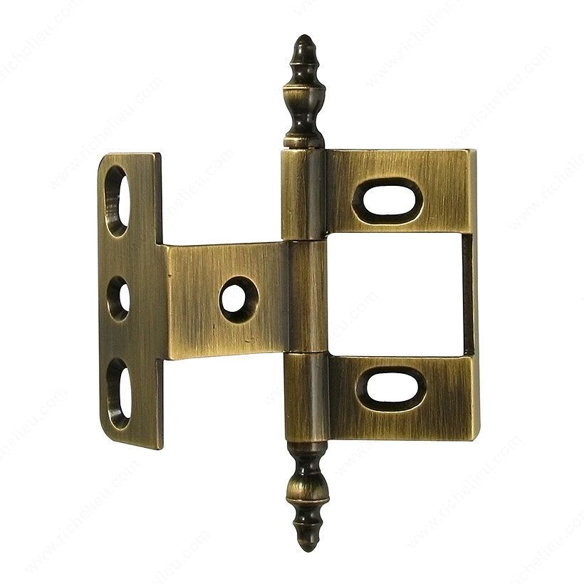 Richelieu 54101AE Classic Metal Hinge - 5410 is a perfect blend of elegance and functionality, making it an ideal choice for traditional projects. Crafted from high-quality brass, this hinge boasts a stunning Antique English finish that adds a touch of sophistication to any door or cabinet. With an overall height of 3 5/8 inches and a width of 2 1/4 inches, it is designed to accommodate a blade thickness of 3/32 inches, ensuring a secure fit and reliable performance. The hinge features a steeple and minaret finial style, enhancing its classic aesthetic appeal. It is a traditional enveloping hinge, perfect for those seeking to maintain a timeless look in their architectural designs. Each hinge comes with wood screws included, allowing for easy installation and ensuring a sturdy attachment. Richelieu's commitment to quality means this hinge not only looks great but also stands the test of time. It ships conveniently via UPS, making it easy to incorporate into your project without delay. Whether you're a building professional or a knowledgeable homeowner, the Richelieu 54101AE Classic Metal Hinge is an essential component that combines style and durability for your cabinetry and doors.