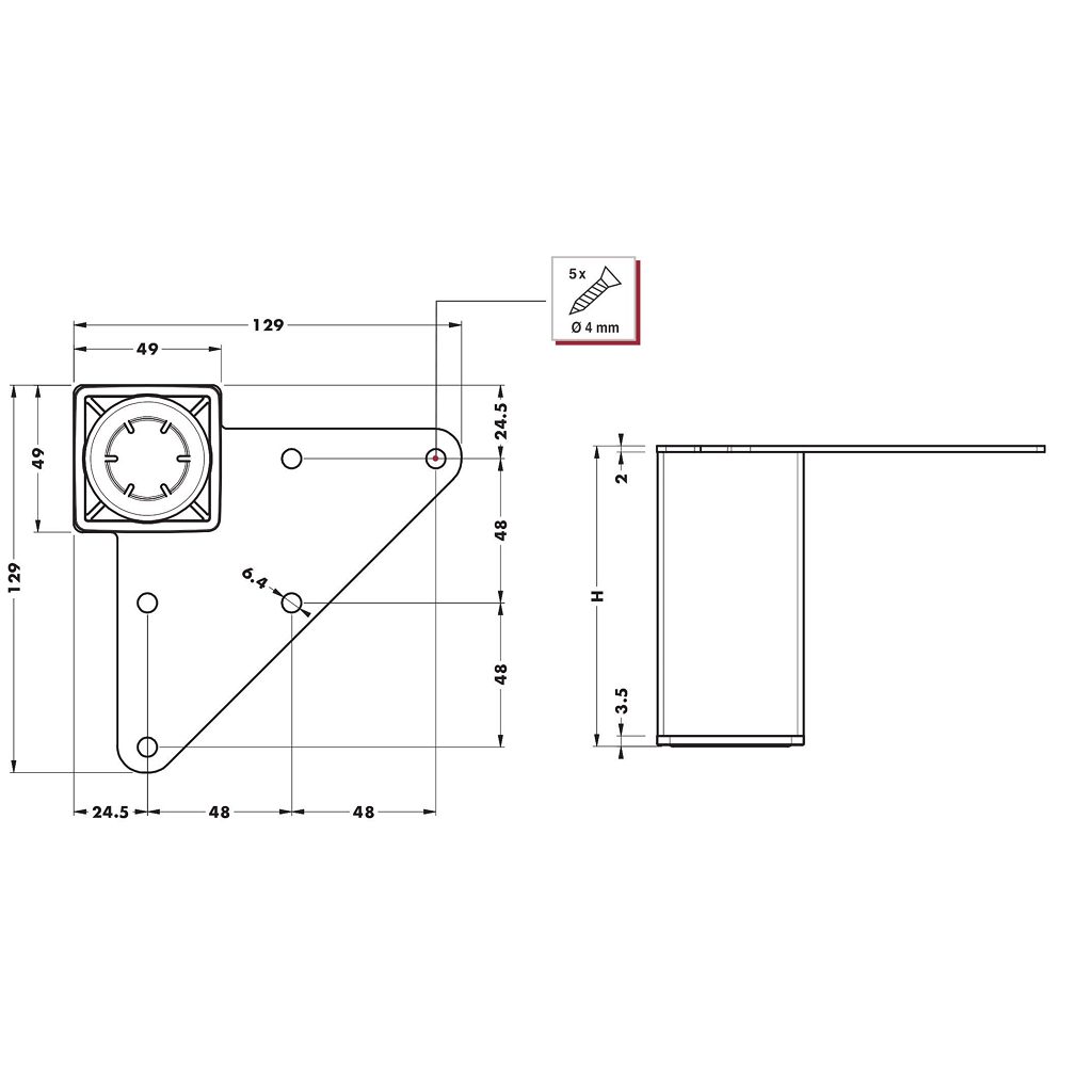 Plate Dimension: 129 mm x 129 mm