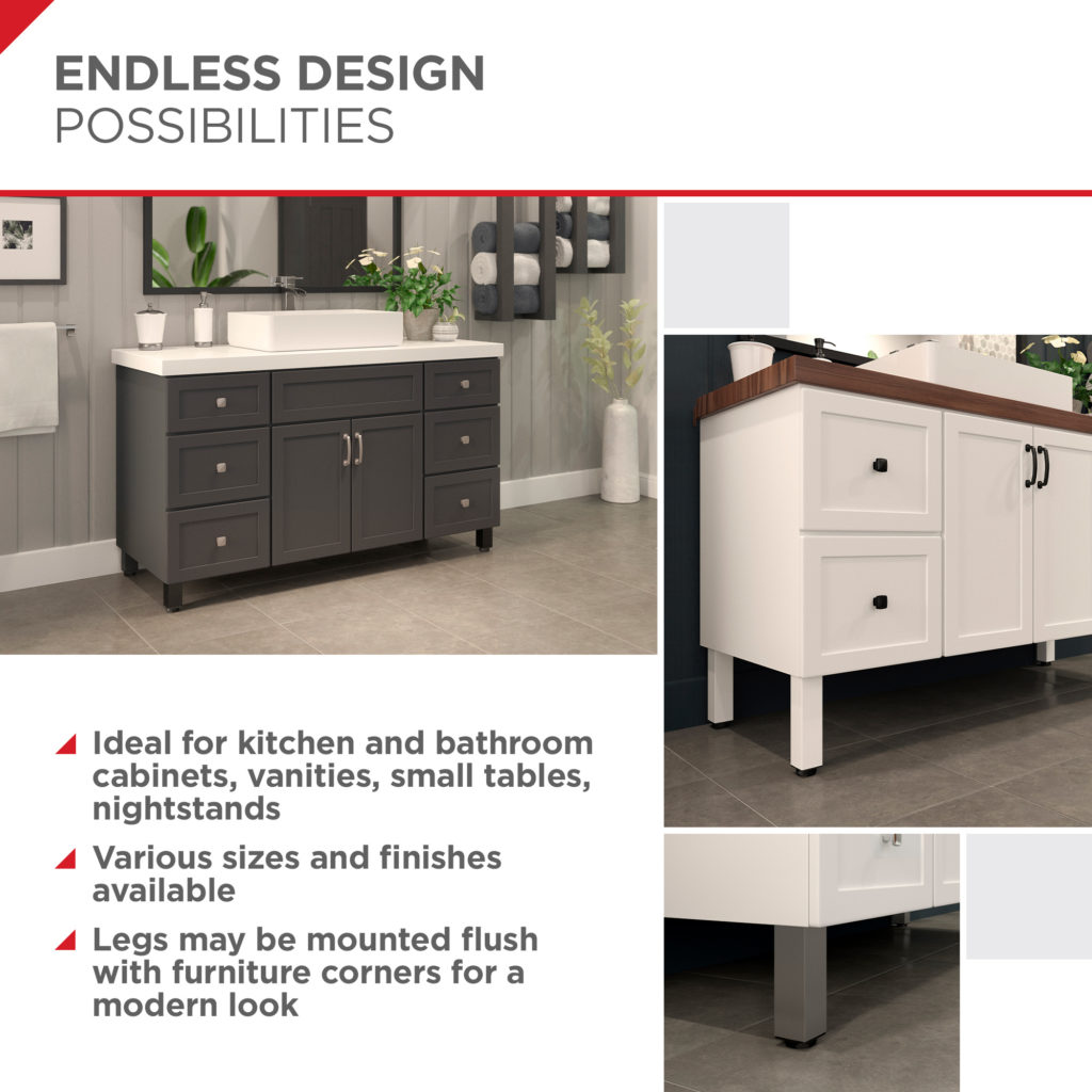 Add a touch of modern elegance to your kitchen, bathroom, living room, or bedroom with Richelieu's Square Furniture Legs.