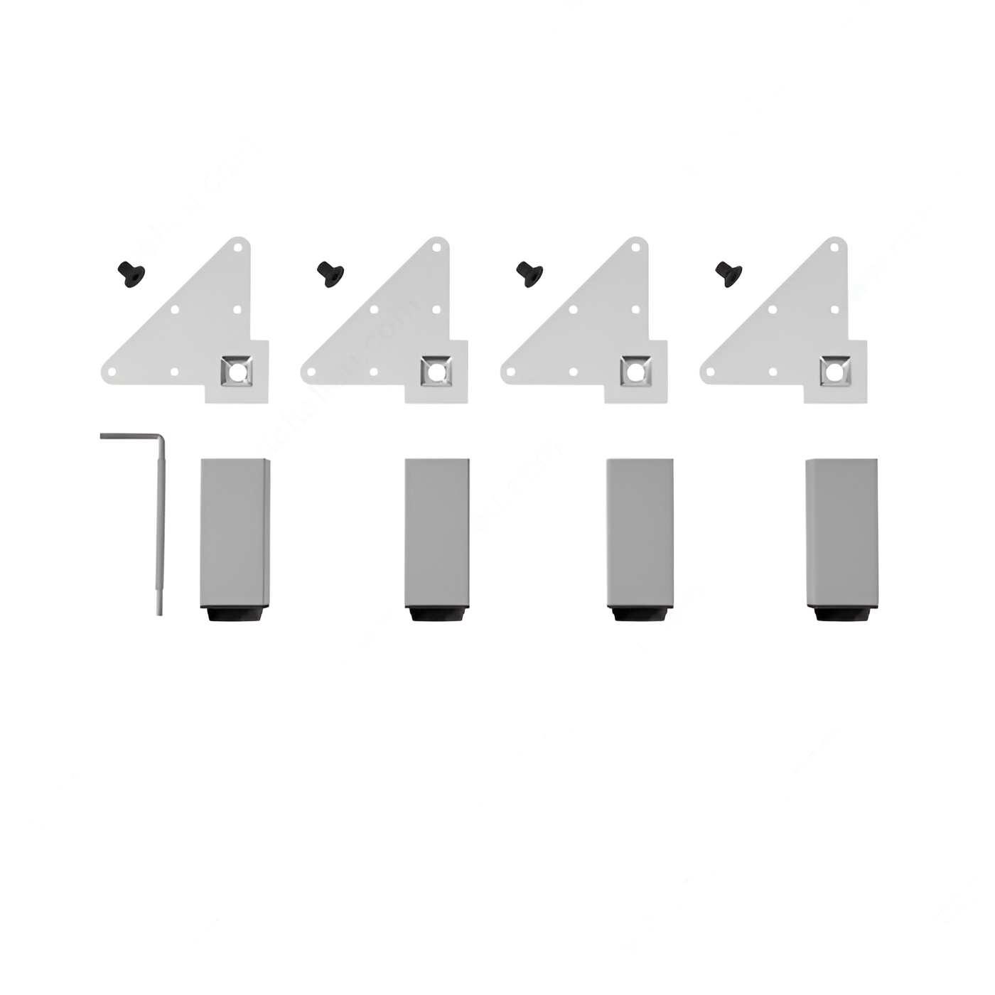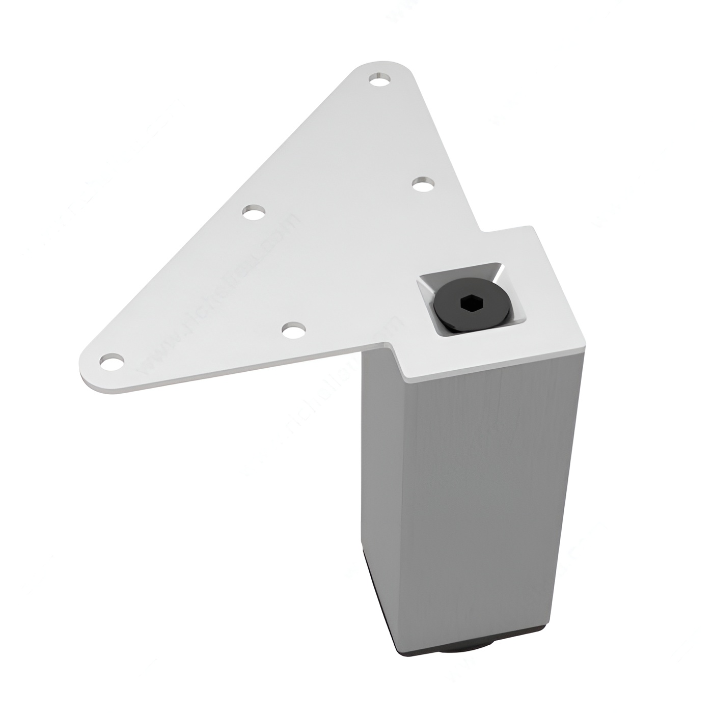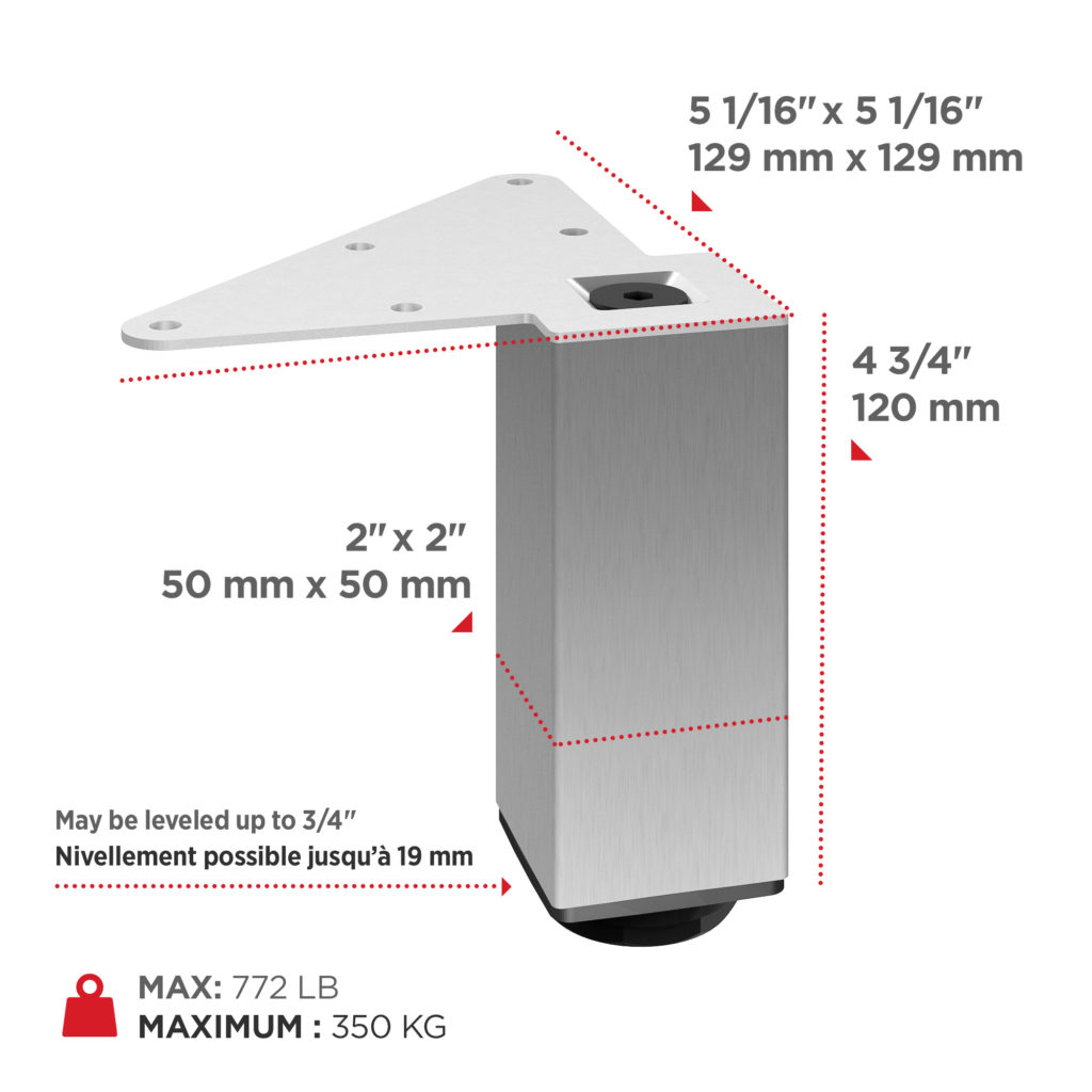 Richelieu 555120170 Adjustable Furniture Leg 555Richelieu 555120170 Adjustable Furniture Leg - 555 combines modern elegance with robust functionality, making it an ideal choice for diverse spaces such as kitchens, bathrooms, living rooms, and bedrooms. These heavy-duty square furniture legs are designed to support a range of furniture items, including cabinets, sideboards, vanities, nightstands, and small tables, allowing for endless design possibilities. Crafted from high-quality metal with a sleek stainless steel finish, each leg boasts a base dimension of 49 mm x 49 mm and stands at a height of 4 23/32 inches. The adjustable feature allows for height modifications up to 3/4 inch, accommodating uneven floors and ensuring stability. With a remarkable load capacity of 772 lbs per leg, these legs provide the strength needed for any project. Sold as a set of four, the legs can be mounted flush with furniture corners, lending a refined look to your pieces. Easy installation is assured with included mounting plates, bolts, and an Allen key. Whether you are a building professional or a knowledgeable homeowner, the Richelieu 555120170 Adjustable Furniture Leg is a perfect blend of style and practicality that enhances any interior.