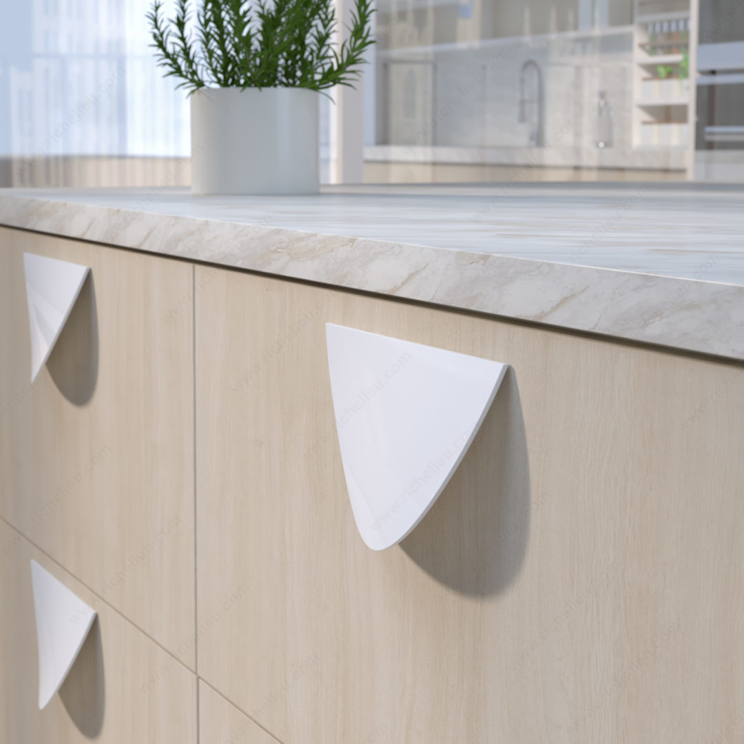 Richelieu 55569630 Modern Metal Pull - 5556 is a striking addition to contemporary furniture and decor, designed to bring a touch of sophistication to any space. Crafted from durable zamak, this semi-circle pull features a refined white finish that complements a variety of design aesthetics. Measuring 4 31/932 inches in height and 9 7/8 inches in length, it provides a substantial yet elegant grip, while the projection of 1 7/8 inches ensures ease of use. This pull is part of the New Collection and is ideal for creating a cohesive look when paired with additional pulls from the same line. With a center-to-center measurement of 3 25/32 inches, it’s straightforward to install, making it a practical choice for builders and DIY enthusiasts alike. The M5 screws are included for added convenience. Whether you’re updating kitchen cabinetry or enhancing the functionality of office furniture, this modern pull not only offers superior performance but also elevates the overall aesthetic. To achieve an eye-catching circular design, consider ordering two pulls. The Richelieu 55569630 Modern Metal Pull is a perfect blend of style and functionality, making it an essential choice for those who appreciate quality craftsmanship.