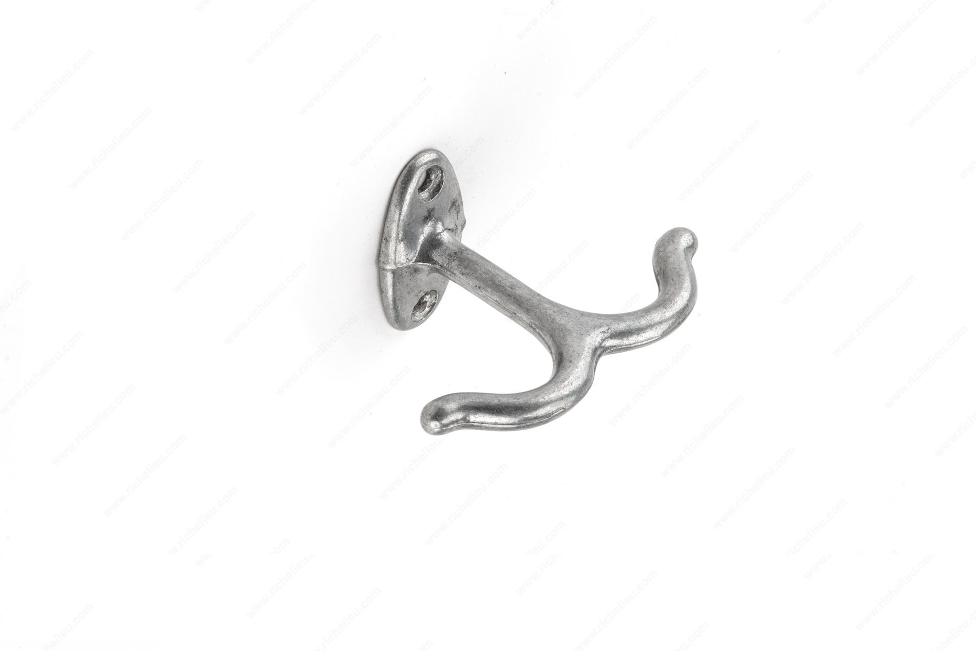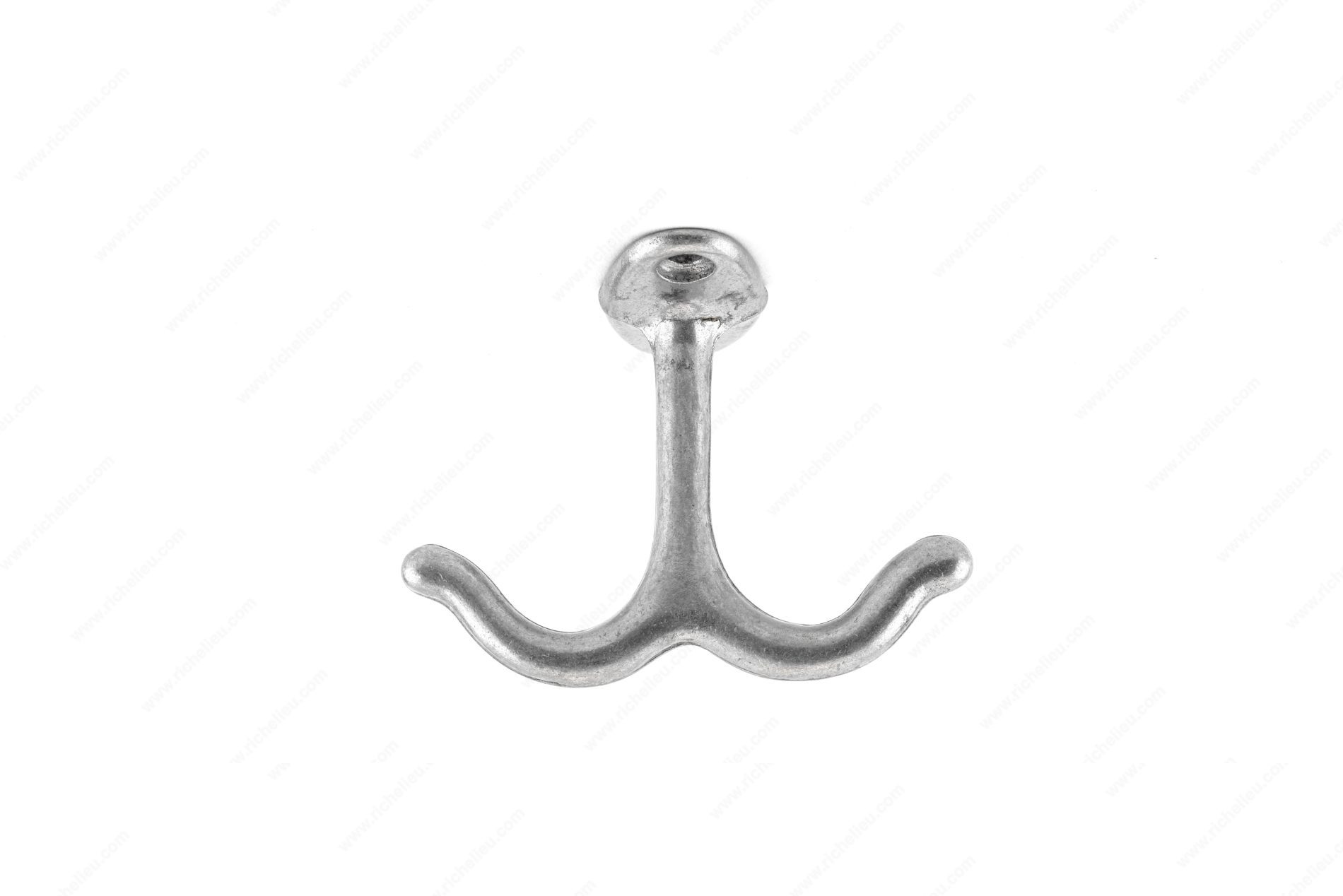 Richelieu 580A92 Double Ceiling Hook is the perfect solution for maximizing space in closets and storage lockers. Designed for easy attachment to the underside of shelves, this utility hook offers a practical and efficient way to organize your belongings. Constructed from durable aluminum, the hook features a stylish satin chrome finish that complements a variety of interiors while ensuring long-lasting performance. With an overall length of 1 inch, a projection of 2 1/4 inches, and a width of 1 7/8 inches, this double hook provides ample space for hanging items securely. It boasts a load capacity of 22 pounds, making it suitable for a range of lightweight to moderately heavy items. Available in a sleek gray and chrome color scheme, the Richelieu 580A92 is not only functional but also aesthetically pleasing. Whether you're outfitting a residential closet or enhancing a commercial storage solution, this versatile hook meets diverse needs and styles. Easily shipped via UPS, the Richelieu 580A92 Double Ceiling Hook is an essential addition to any organizational project, combining practicality, durability, and modern design into one compact product. Transform your space with this efficient and reliable storage solution.