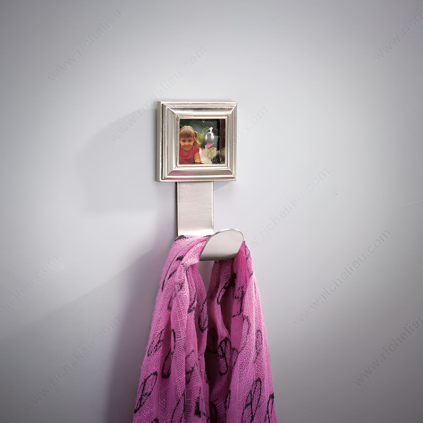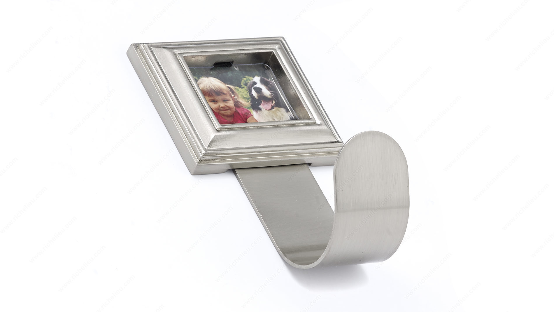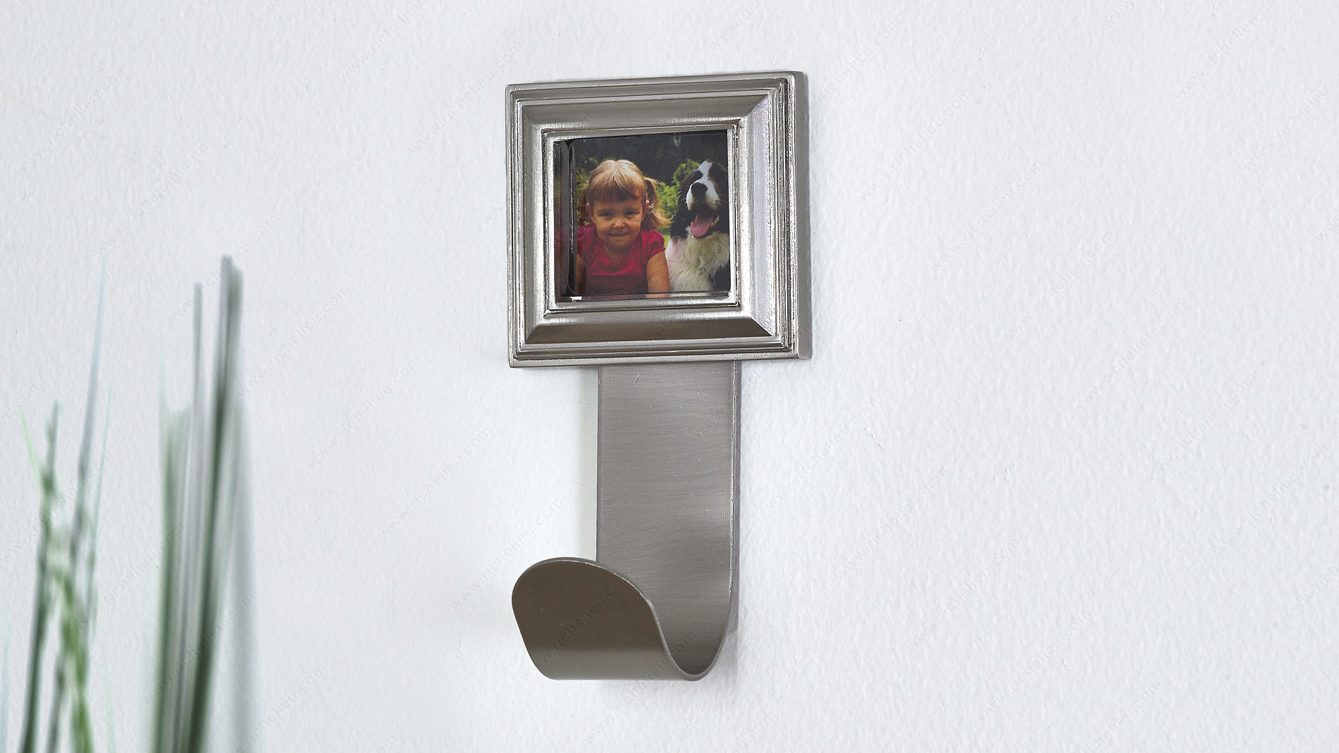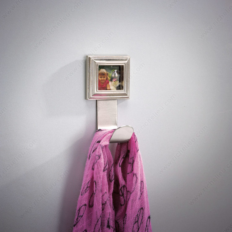 Richelieu 60149 Classic Metal Hook - 601 offers a timeless solution for displaying cherished memories in your home. This traditional picture hook seamlessly blends functionality with style, making it an ideal choice for both professionals and discerning homeowners. Crafted from durable metal, it features a brushed nickel finish that adds a touch of elegance to any space. With an overall height of 3 27/32 inches and a width of 2 1/8 inches, this simple yet classic hook is designed to accommodate a load capacity of up to 22 pounds, ensuring your valuable artwork and photographs are securely hung. The hook projects 1 27/32 inches from the wall, making it a practical addition to any room without overwhelming the aesthetics. Included with your purchase are the necessary screws for easy installation, allowing you to personalize your walls with ease. The Richelieu 60149 Classic Metal Hook is available in a stylish gray and chrome color scheme, harmonizing with various decor styles. Whether you're a contractor looking for reliable hardware or a homeowner aiming to enhance your interior design, this picture hook provides the perfect blend of utility and beauty.