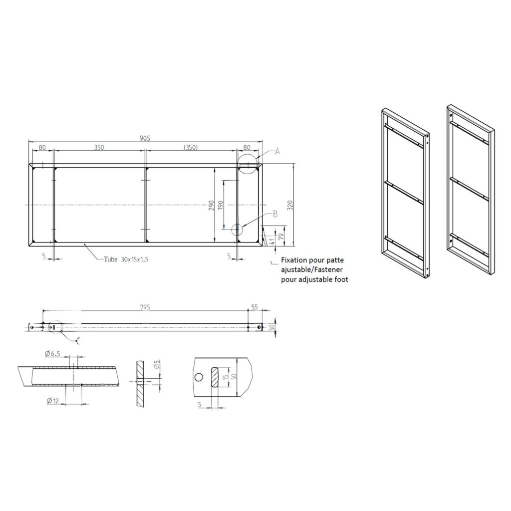 Quick shelf assembly: simply screw underneath the welded grid (screws not included).