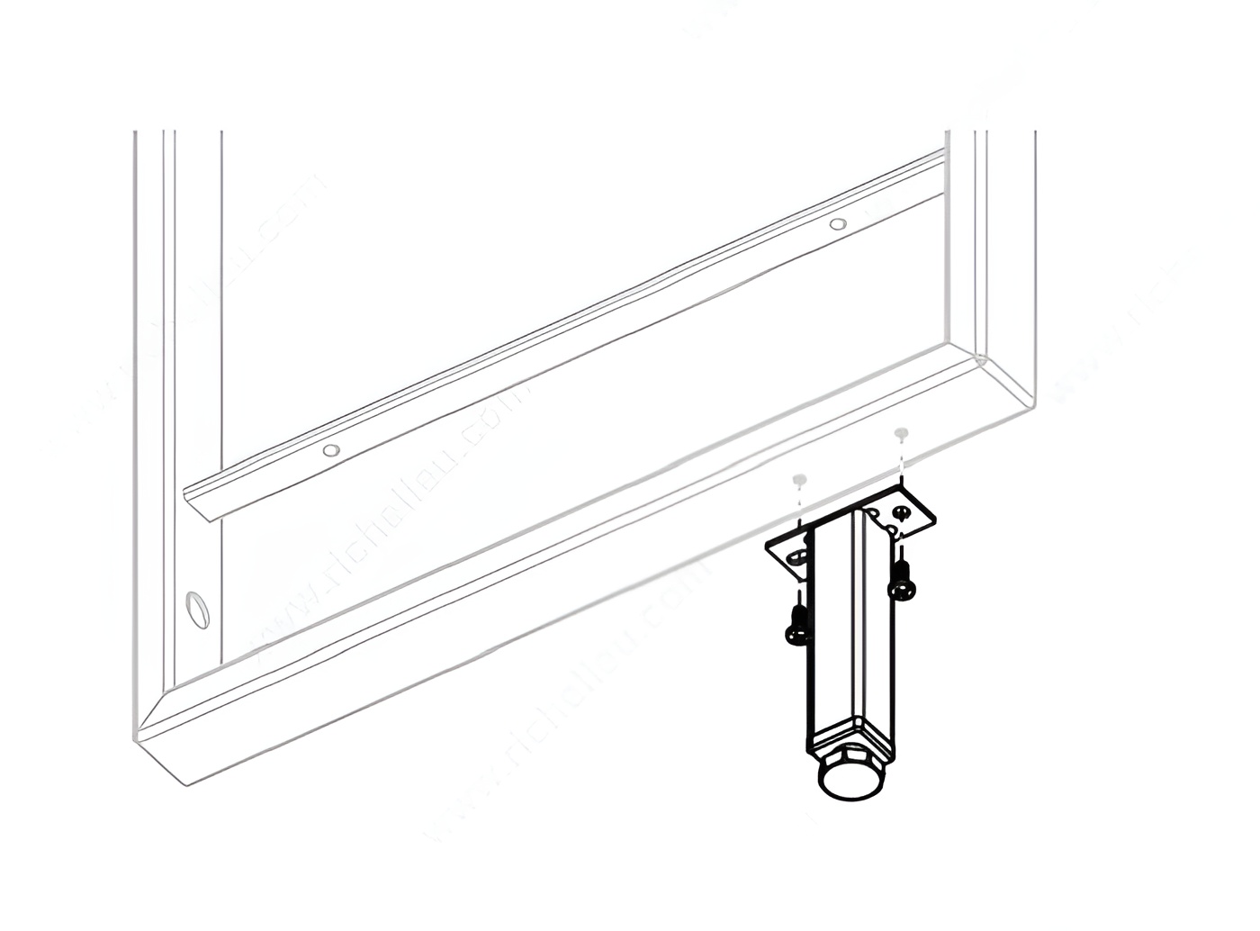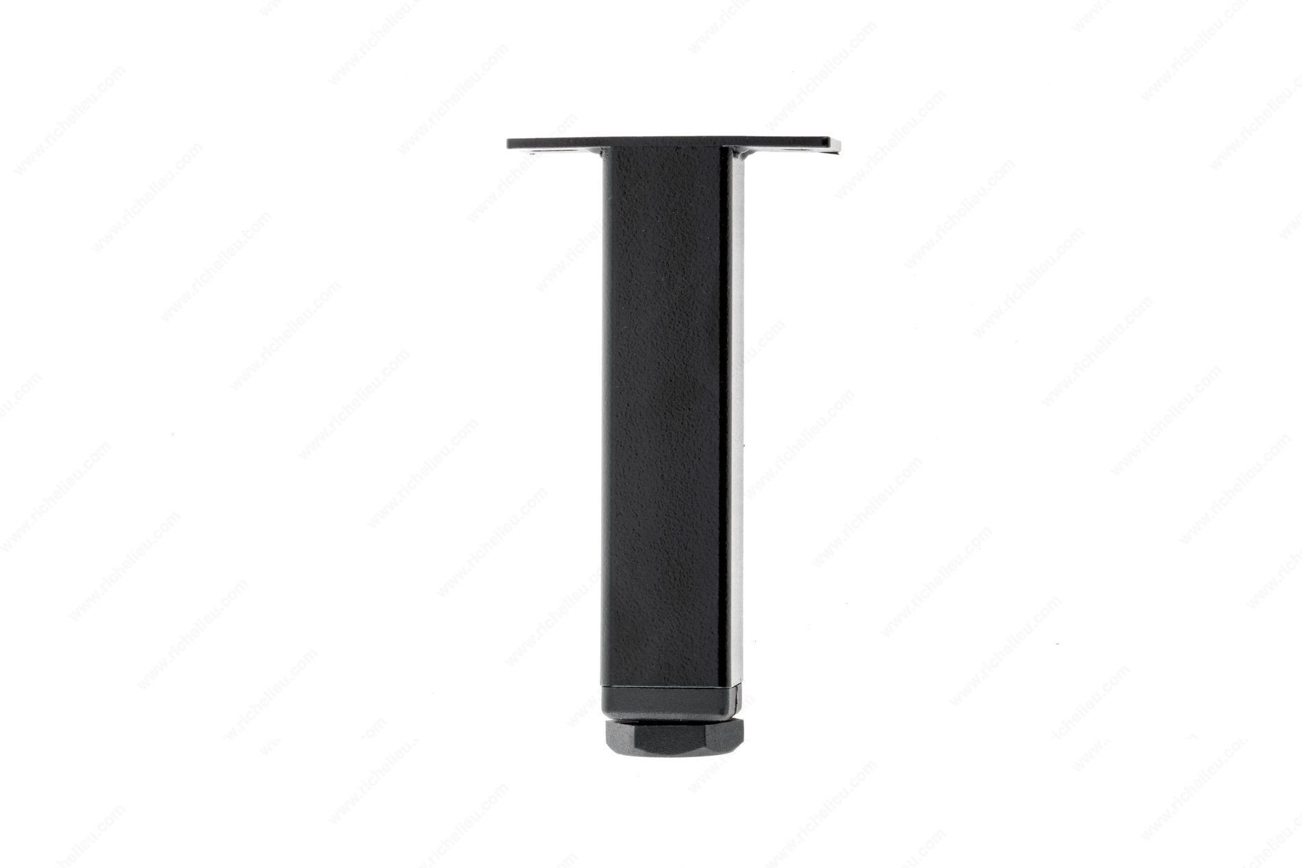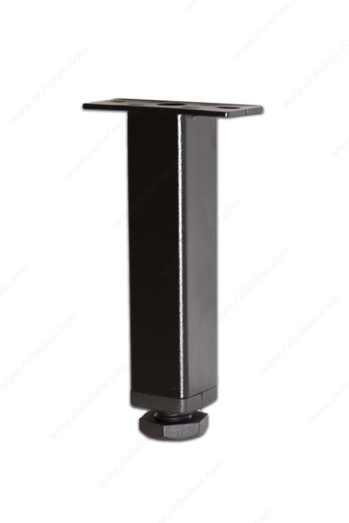 Richelieu 60720900 Adjustable Leg for Youk Shelving Program offers a robust solution for enhancing the stability of your shelving units. This adjustable leg measures 4 inches (100 mm) in height, featuring an integrated glide that allows for a fine-tuned adjustment of 3/8 inch (10 mm) from the bottom, ensuring that your shelving is perfectly level on any surface. Designed specifically for the Youk shelving system, each leg is easily installed by screwing it directly into the dedicated pre-drilled holes located beneath the shelf base. This uncomplicated installation process not only saves time but also guarantees a secure fit. For added safety, it is essential to anchor the shelving structure to the wall, providing peace of mind in high-use environments. Crafted from durable steel with a sleek matte black finish, the leg seamlessly combines functionality with a modern aesthetic, making it ideal for both residential and commercial settings. With a depth of 25/32 inches and a width of 25/32 inches, the leg maintains a low profile while delivering impressive support. The Richelieu 60720900 Adjustable Leg is an essential accessory for any Youk shelving project, ensuring both style and stability in your storage solutions.