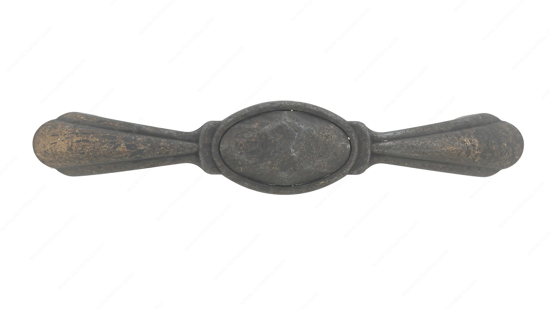 Richelieu 61657496138 Traditional Metal Pull - 6165 adds a touch of opulence to your home décor with its elegantly designed pendant pull. Drawing inspiration from the Art Deco Collection, this piece is perfect for elevating the style of any furniture or cabinetry. Its rich spotted bronze finish, combined with a classic traditional style, makes it a standout element in your design. Measuring 4 3/4 inches in length and featuring a 3 25/32 inch center-to-center distance, this metal pull is both functional and aesthetically pleasing. The projection of 29/32 inch ensures a comfortable grip while maintaining a sleek profile. With an overall width of 7/8 inch, it seamlessly fits into various applications. Crafted from high-quality metal, this pull is durable and designed for longevity. Installation is straightforward, requiring M4 screws (not included), making it an ideal choice for both professionals and knowledgeable homeowners looking to enhance their spaces. Richelieu's 61657496138 Traditional Metal Pull is shipped via UPS, ensuring prompt delivery. Transform your cabinetry with this exquisite hardware piece that embodies both elegance and functionality.
