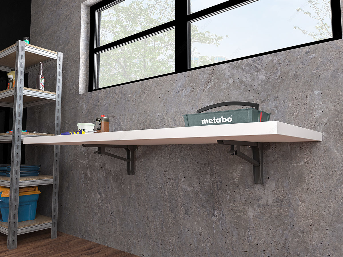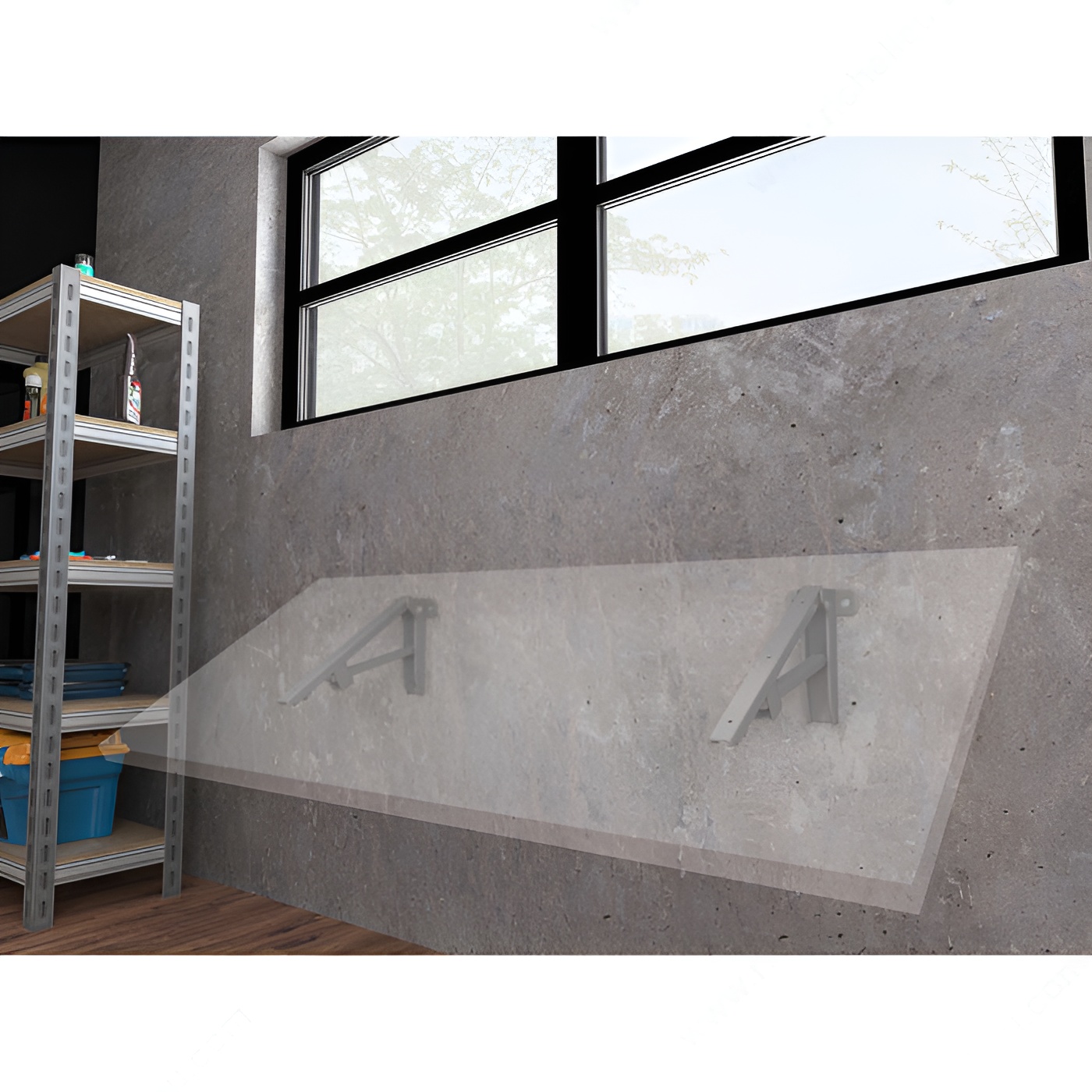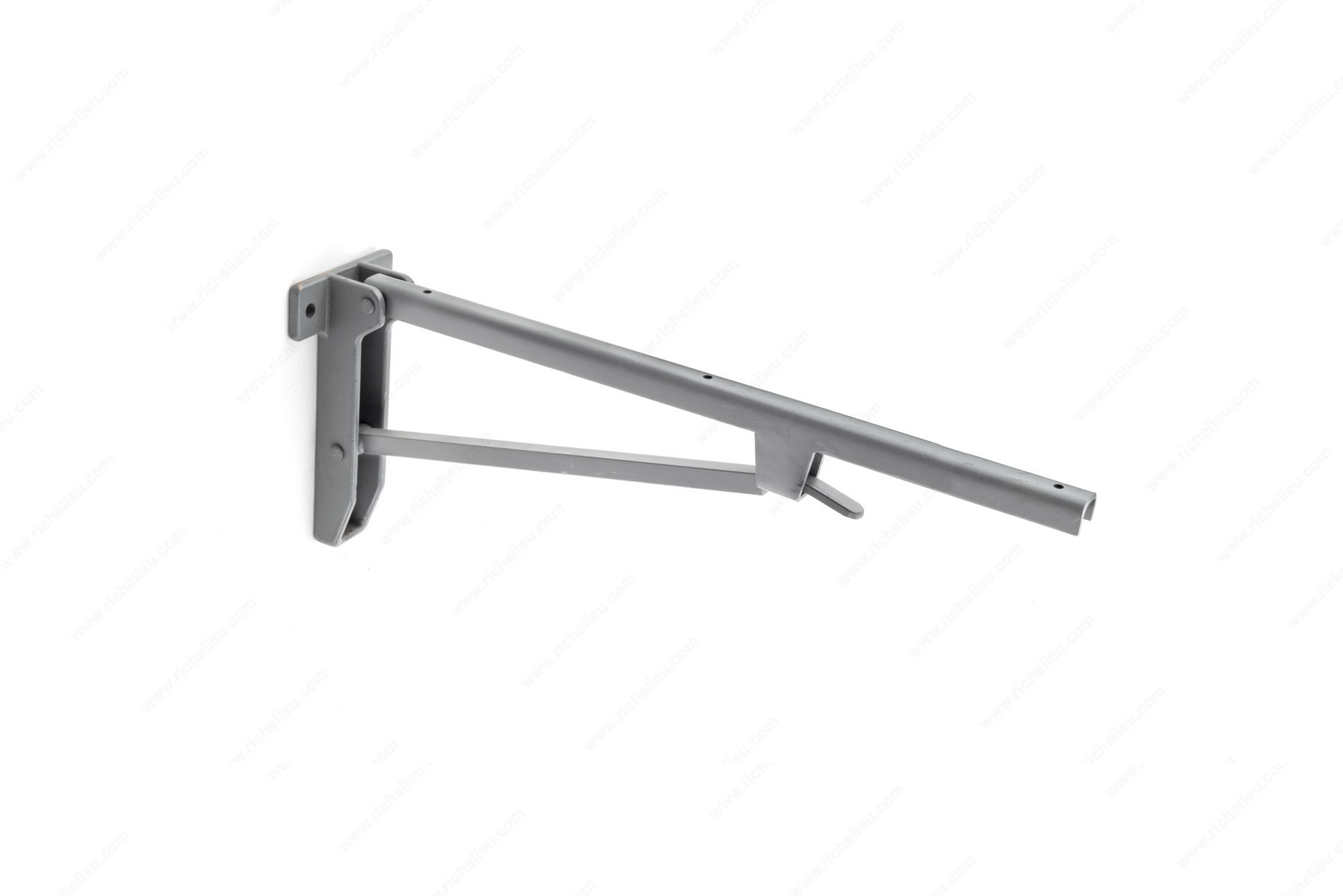 Richelieu 625058000 K-Fold Kolossus Heavy-Duty Folding Bracket offers robust support for constructing rugged seating and surfaces, making it ideal for both indoor and outdoor applications. Engineered for strength, this heavy-duty bracket automatically locks in an upright position, providing quick and easy access to unlock by simply raising the locking arm. With a remarkable maximum load capacity of 1102 lb per pair, this bracket is perfectly suited for demanding environments such as cellars, workshops, garages, and cabins. Its versatility extends to heavy-duty tables and benches, ensuring that it can accommodate extremely heavy loads with ease. Constructed from durable steel with a sleek gray finish, the Richelieu K-Fold Bracket measures 8 21/32 inches in height, 22 7/8 inches in length, and 4 17/32 inches in width. The bracket's projection matches its length, providing an efficient and sturdy support solution. Designed to support shelves with a thickness of 2 3/8 inches, it integrates seamlessly into various settings. Whether you’re a building professional or a knowledgeable homeowner, the Richelieu K-Fold Kolossus Heavy-Duty Folding Bracket is the reliable choice for your structural needs.