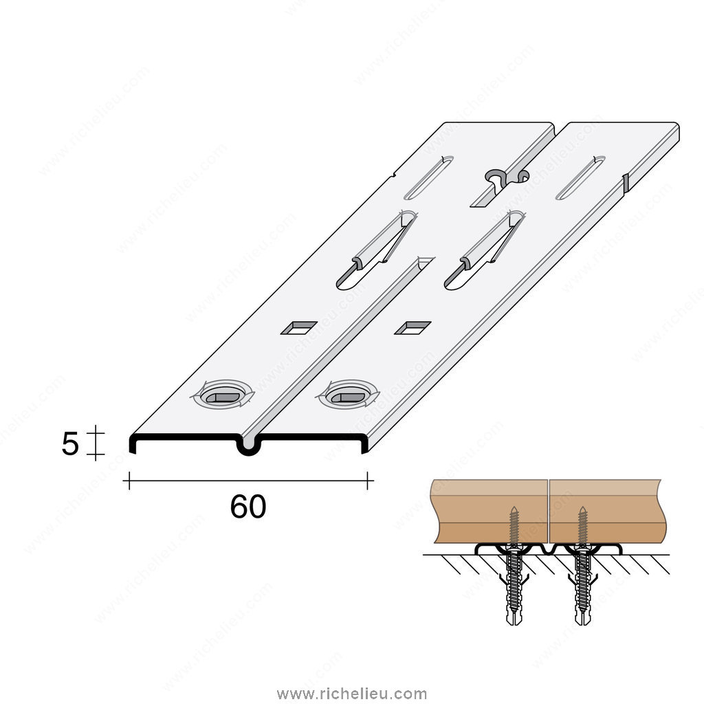 Richelieu 62NB028862G Vertical Concealed Standard for Decorative Paneling is expertly designed to enhance both aesthetic appeal and functionality in your projects. This innovative profile is completely recessed into the wall, allowing the decorative panel to appear as though it is elegantly floating. The minimalist design creates a frameless look, making it an ideal choice for contemporary spaces. This concealed standard is not only visually striking but also economical, significantly speeding up the paneling process. It allows for fast assembly, enabling removable wall paneling that can be easily updated or changed as needed. Suitable for any kind of panel and thickness, this versatile solution meets various design requirements, providing flexibility in your installations. Constructed from durable steel with a sleek zinc finish, the Richelieu 62NB028862G ensures longevity and robust performance. Measuring 9 feet 5 inches in length and 2 3/8 inches in width, this product delivers reliable support while maintaining a low profile. Ideal for both building professionals and knowledgeable homeowners, this concealed standard offers an elegant solution for modern decorative paneling needs, combining style and practicality seamlessly. Elevate your space with the Richelieu 62NB028862G and experience the difference in design excellence.