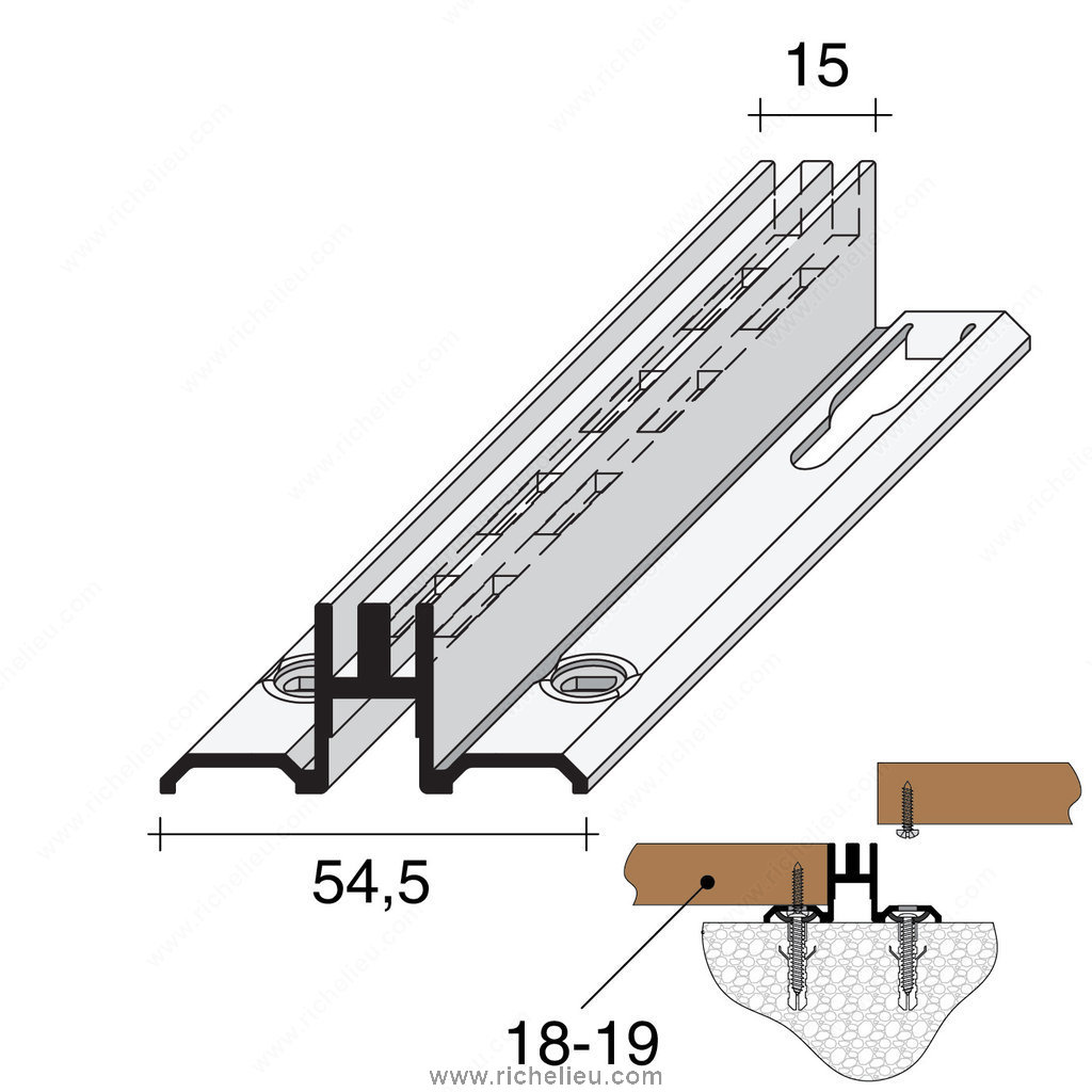 Richelieu 62NB2253110 Vertical Double Slotted Standard offers a robust solution for creating versatile panel installations. Designed specifically for panels with a thickness ranging from 10 mm to 19 mm, this standard ensures a flush fit that enhances the overall aesthetic of your project. The satin aluminum finish not only provides a sleek and modern look but also ensures longevity and durability. With a length of 99 5/8 inches and a width of 2 5/32 inches, this vertical structure is perfect for various applications, making it a reliable choice for both building professionals and discerning homeowners. The central position of the slotted profile allows for easy adjustments and alignment, facilitating a seamless assembly process. Constructed from anodized aluminum, the 62NB2253110 delivers strength without compromising on weight, making it ideal for both residential and commercial projects. Its slotted function provides exceptional flexibility, enabling you to create custom configurations tailored to your specific needs. Please note that shipping is available via common carrier only, ensuring safe and efficient delivery. Elevate your installation projects with the Richelieu 62NB2253110, where quality meets functionality in architectural metal solutions.