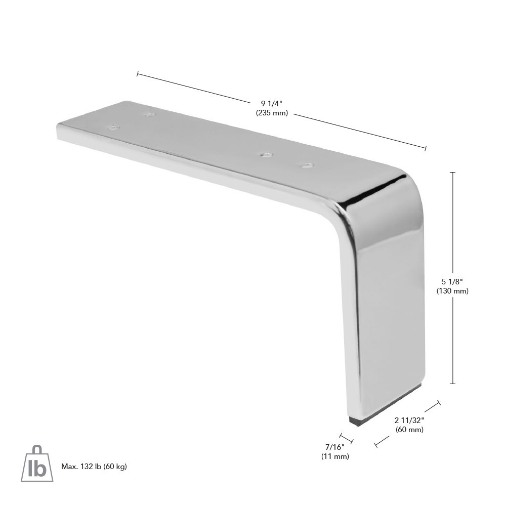 Richelieu 64044130140 Contemporary Furniture Leg is the perfect solution for adding a sleek and modern touch to your furniture designs. Crafted from durable steel and finished in a sophisticated chrome, this furniture leg is designed to enhance the aesthetics of sofas, cabinets, and upholstered goods. With a height of 5 1/8 inches, it provides the ideal elevation while ensuring stability and support. The leg features a rectangular shape with dimensions of 11 mm x 60 mm, allowing it to blend seamlessly with a variety of styles. Each leg has a robust load capacity of 132 lbs, ensuring reliability for all your furniture needs. The plate dimension of 235 mm x 60 mm makes installation straightforward, so you can easily elevate your furniture without hassle. Whether you’re a building professional or an informed homeowner, you will appreciate the simplicity and elegance this furniture leg brings to your projects. Perfect for both residential and commercial applications, the Richelieu Contemporary Furniture Leg is designed for easy installation and lasting performance. Ship via UPS for added convenience, making it a practical choice for your next endeavor. Transform your spaces with this essential finishing touch today.
