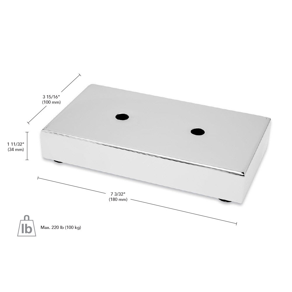 Richelieu 6492730140 Contemporary Fixed-Height Furniture Leg offers a sleek and modern solution for enhancing your furniture's stability and style. Designed for both upholstered and wooden pieces, this leg is perfect for sofas and other furnishings, providing a contemporary touch to any interior. Constructed from durable steel, the leg features a striking chrome finish, ensuring it not only supports but also elevates the aesthetic appeal of your furniture. Measuring 1 11/32 inches in height, with a base dimension of 180 mm x 100 mm, it offers a robust design that can comfortably hold up to 220 lbs per leg. The integrated pad enhances functionality by protecting your floors from scratches and damage, making it an ideal choice for various environments. Whether you're a building professional seeking reliable hardware or a knowledgeable homeowner looking to upgrade your living space, the Richelieu Contemporary Fixed-Height Furniture Leg stands out as a practical and stylish option. With the ability to ship via UPS, incorporating this furniture leg into your project is both convenient and efficient. Elevate your furnishings today with this essential accessory that combines form and function seamlessly.