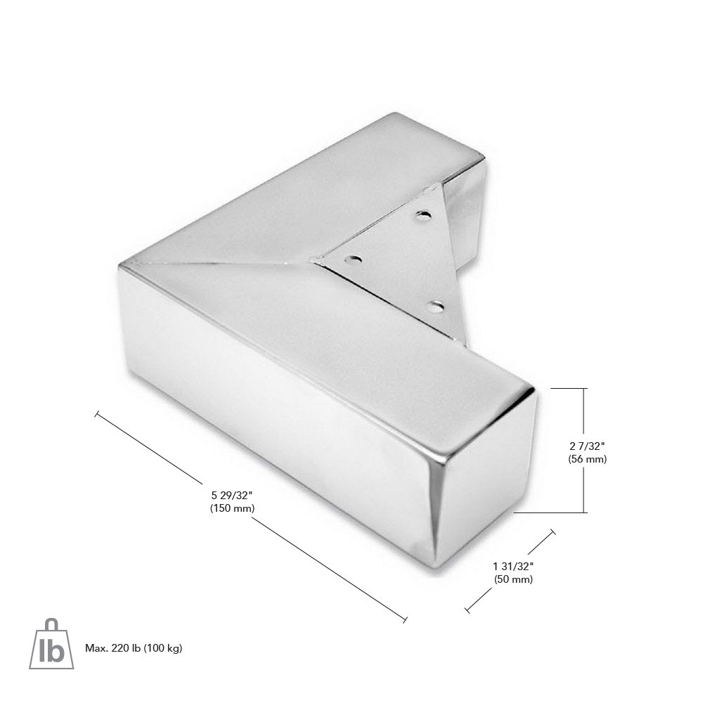Richelieu 6494150140 Contemporary Fixed-Height Furniture Leg - 649 is designed to provide a sleek and modern touch to your furniture, cabinets, and upholstered goods. With its elegant chrome finish, this leg not only enhances the aesthetic appeal of your pieces but also ensures durability and strength. Measuring 2 7/32 inches in height, it perfectly complements various furniture styles while offering a robust support system. The leg features a rectangular shape with base dimensions of 150 mm x 50 mm, making it ideal for sofas and other furniture applications. Built from high-quality steel, it boasts a remarkable load capacity of 220 lb per leg, ensuring stability and reliability for your furniture pieces. Installation is a breeze, allowing you to quickly elevate your design without hassle. This versatile furniture leg is suitable for shipping via UPS, making it convenient for both professionals and homeowners looking to enhance their spaces. Whether you're updating an existing piece or crafting something new, the Richelieu 6494150140 leg is a practical and stylish choice that adds the perfect finishing touch to any design project.