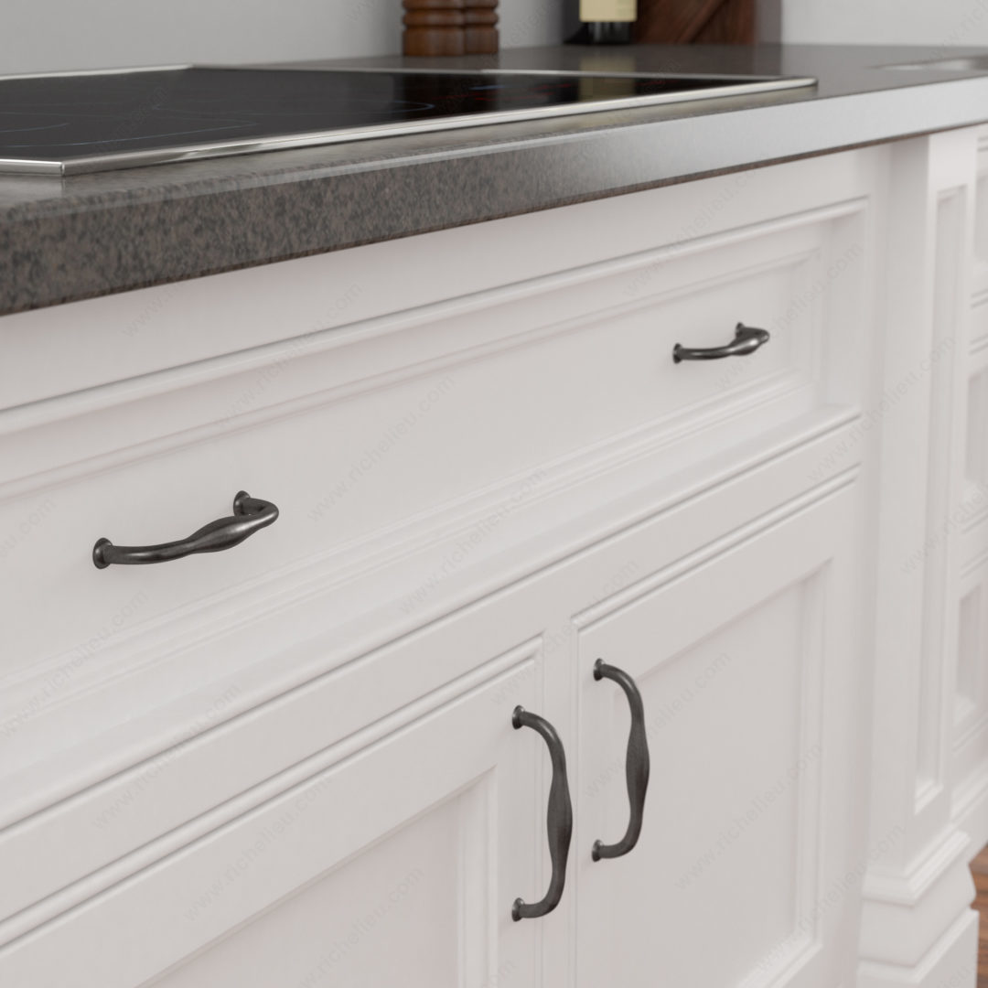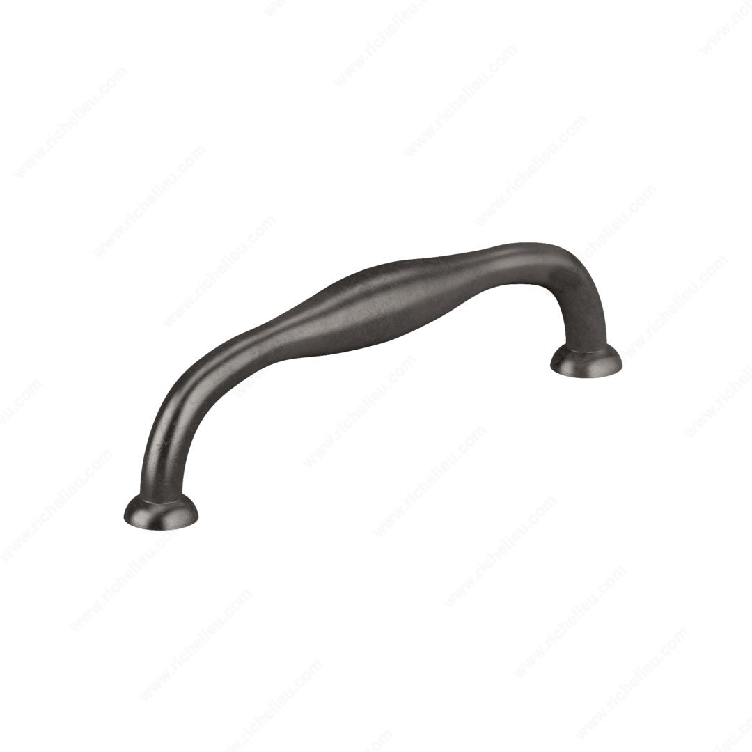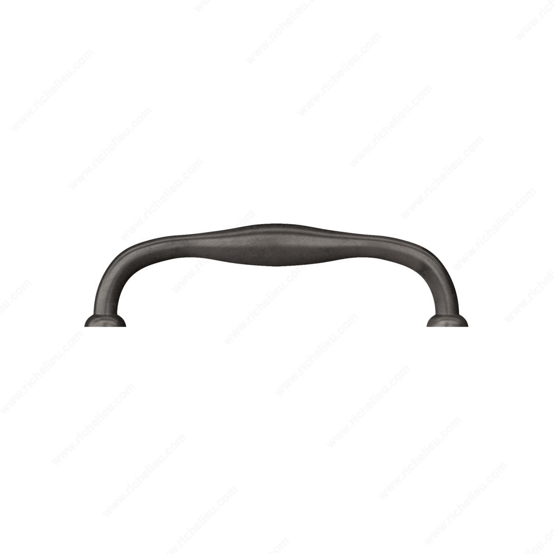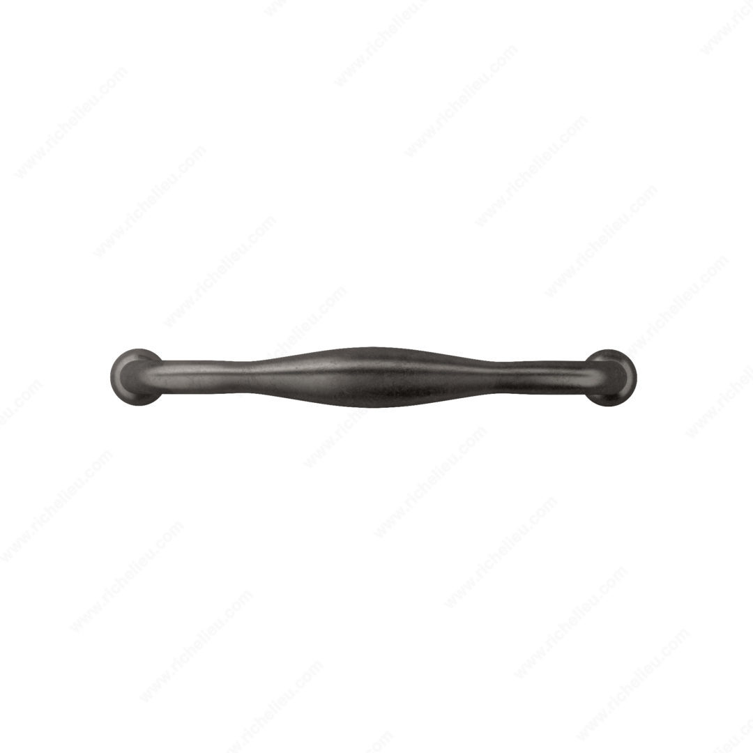 Richelieu 6565128147 Traditional Forged Iron Pull - 6565 is a striking addition that elevates the elegance of furniture and cabinetry. Crafted from durable forged iron, this pull features a unique barreled finish, which adds depth and a classic touch to any design scheme. The rich Durham Bronze color enhances the piece's traditional aesthetic, making it a perfect choice for both contemporary and classic interiors. With an overall length of 5 23/32 inches and a center-to-center measurement of 5 1/32 inches, this pull is designed for comfortable grip and effortless functionality. The width measures 21/32 inches, and it projects 1 5/8 inches from the surface, ensuring a sturdy hold. Each pull comes with the necessary M4 screws for easy installation, making it an excellent choice for builders and homeowners alike. Part of the new collection, the Richelieu 6565 is compatible with other models, adding versatility to your design options. Whether you’re updating a kitchen, bathroom, or furniture piece, this traditional pull combines style and durability, making it a reliable choice for any project. Transform your cabinetry with this exquisite hardware from Richelieu.