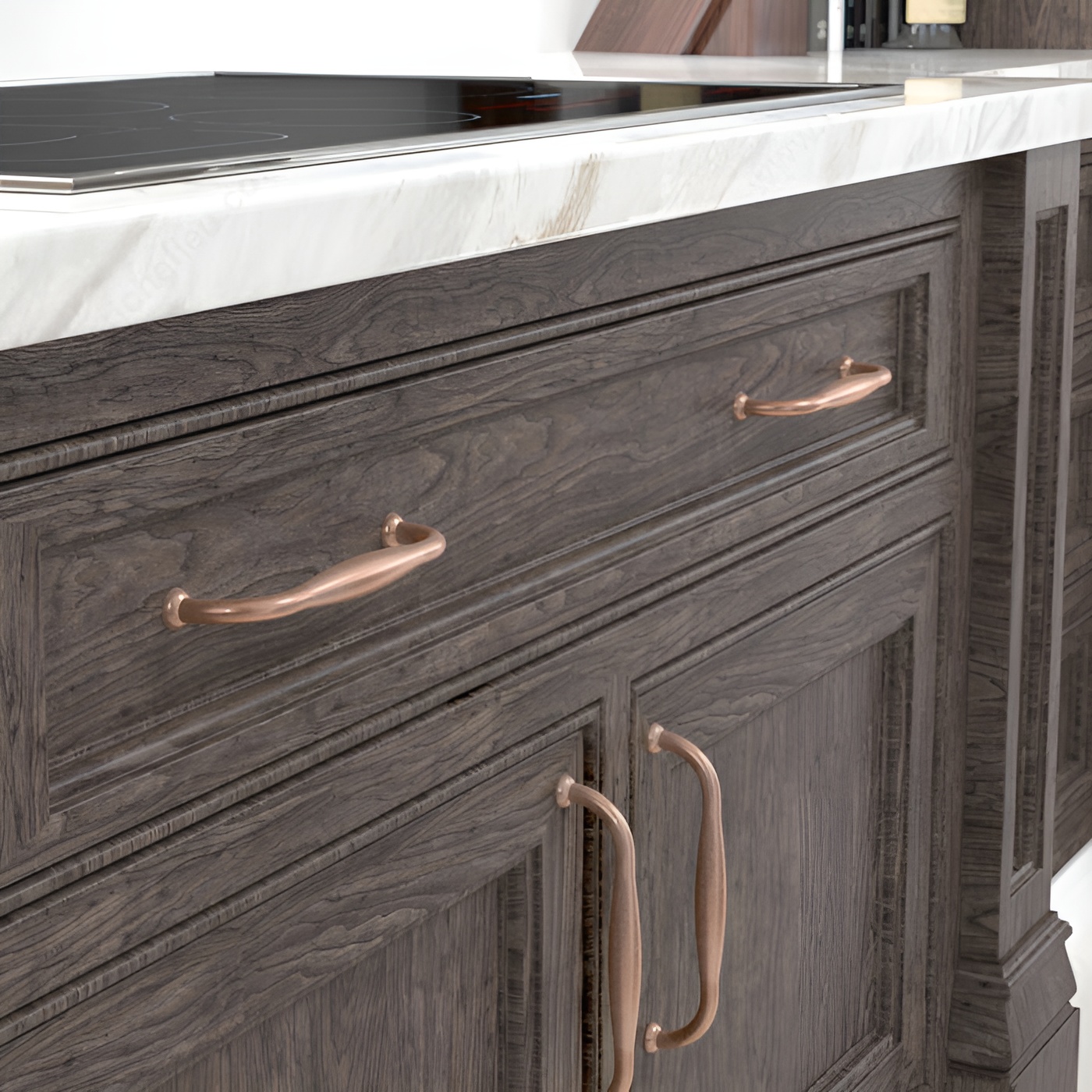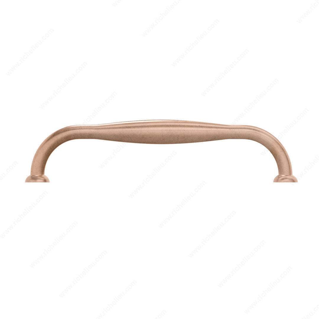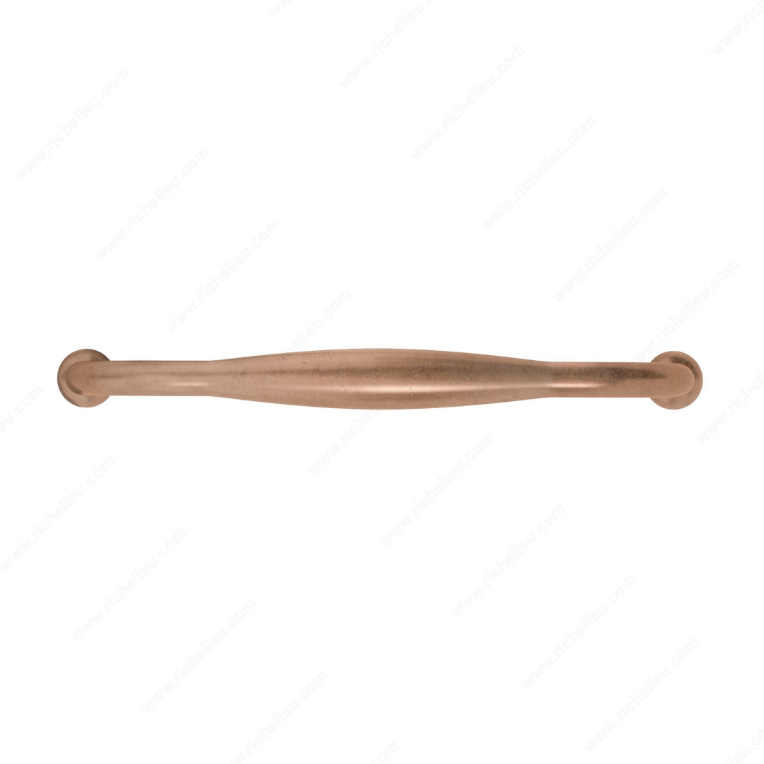 Richelieu 6565192194 Traditional Forged Iron Pull - 6565 offers an exquisite blend of style and durability, making it an ideal choice for enhancing furniture and cabinetry. The tapered design, complemented by a striking barreled finish in Exeter Copper, delivers a strong visual impact that elevates any space. With a center-to-center measurement of 7 9/16 inches and overall dimensions of 8 11/32 inches in length, this pull is perfectly sized for a variety of applications. The traditional style adds a timeless elegance, while the robust forged iron material ensures lasting performance. Available colors include rich shades of red, rose, and rust, which provide versatility in design schemes. Installation is straightforward, as the product comes with M4 screws included, streamlining the process for builders and homeowners alike. The pull's projection of 1 7/8 inches makes it not only aesthetically pleasing but also comfortable to use. Part of a new collection, the Richelieu 6565 pull is designed to complement other items in the range, enhancing cohesive design across projects. Whether for a renovation or new construction, this pull is a sophisticated choice that reflects quality craftsmanship and timeless design.