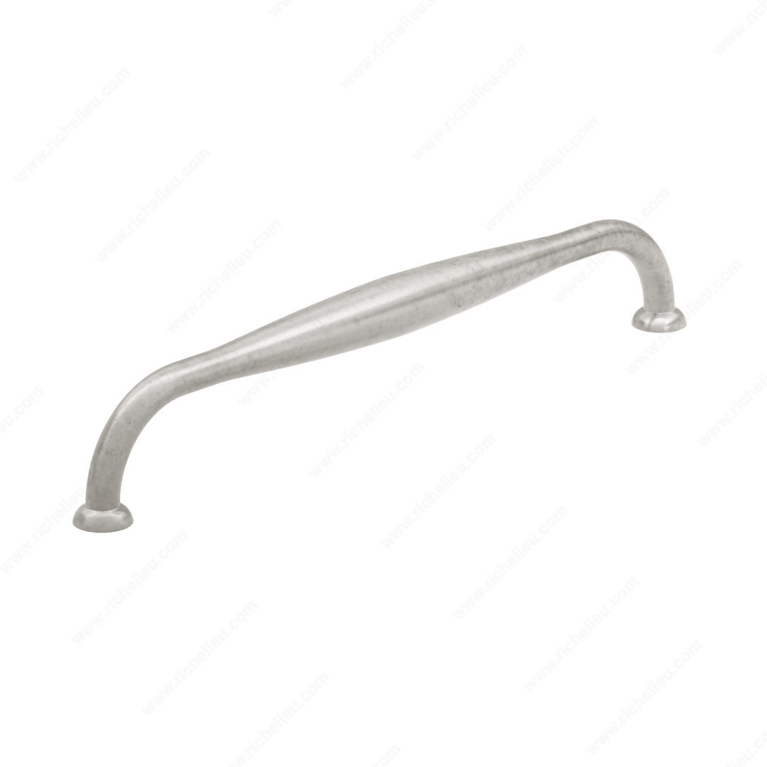 Richelieu 6565320186 Traditional Forged Iron Pull - 6565 delivers a striking aesthetic for furniture and cabinetry with its distinctive barreled finish. Crafted from durable forged iron, this appliance pull not only enhances the visual appeal but also offers long-lasting functionality. The Newcastle Antique Polished Nickel finish adds a sophisticated touch, making it an ideal choice for various interior designs. With an overall length of 13 5/8 inches and a center-to-center measurement of 12 5/8 inches, this pull is designed to fit seamlessly into your cabinetry. Its dimensions, including a projection of 2 13/32 inches and a width of 31/32 inches, ensure that it is both practical and stylish. Whether you are updating a kitchen, bathroom, or any other space, the traditional design complements both modern and classic aesthetics. The pull comes complete with M6 screws for easy installation, ensuring a hassle-free experience. Part of the New Collection, it is compatible with other models in the line, allowing for cohesive design across your space. Elevate your cabinetry with the Richelieu 6565320186 Traditional Forged Iron Pull, a perfect blend of elegance and durability.