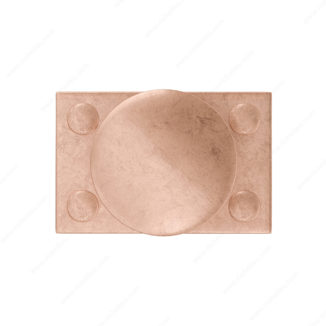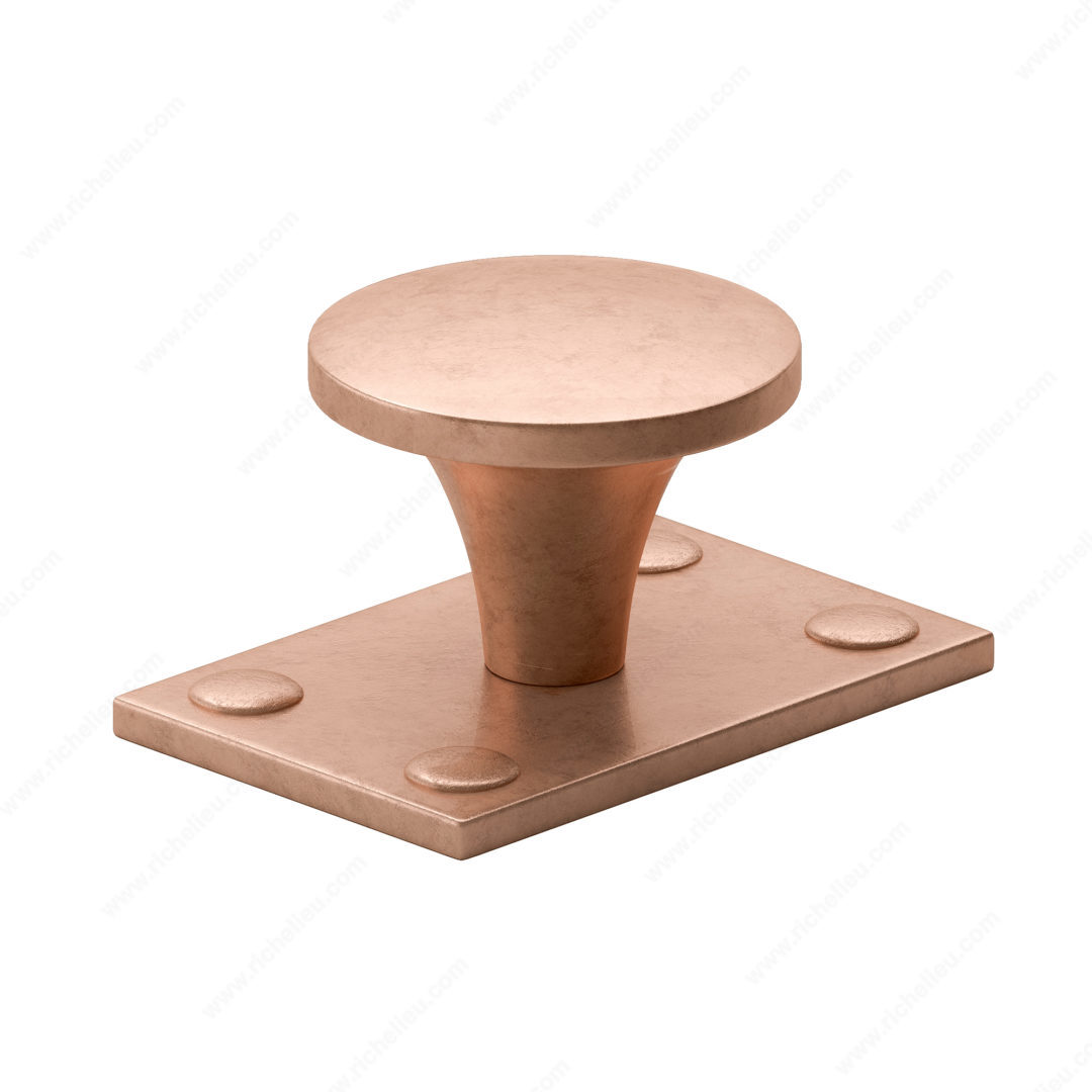 Richelieu 658338194 Traditional Iron Knob - 6583 offers a stunning blend of medieval aesthetics and modern functionality, making it an ideal choice for enhancing your cabinetry or furniture. This knob is beautifully complemented by a detachable backplate adorned with faux screw embellishments, providing a unique character that elevates any space. Crafted from durable iron, this knob boasts a rich Exeter Copper finish that harmonizes seamlessly with its red, rose, and rust color palette. With an overall diameter of 1 1/2 inches and a length of 2 9/32 inches, it strikes the perfect balance between form and function. The projection of 1 5/16 inches ensures a comfortable grip, while the included M4 screw simplifies installation. Part of the New Collection, this traditional-style knob is perfect for those seeking to add a touch of historic charm to their interiors. Its versatile design allows it to fit effortlessly into various decor themes, while its robust construction ensures long-lasting performance. Whether you're a building professional or a discerning homeowner, the Richelieu 658338194 Traditional Iron Knob will enhance your project with elegance and style.