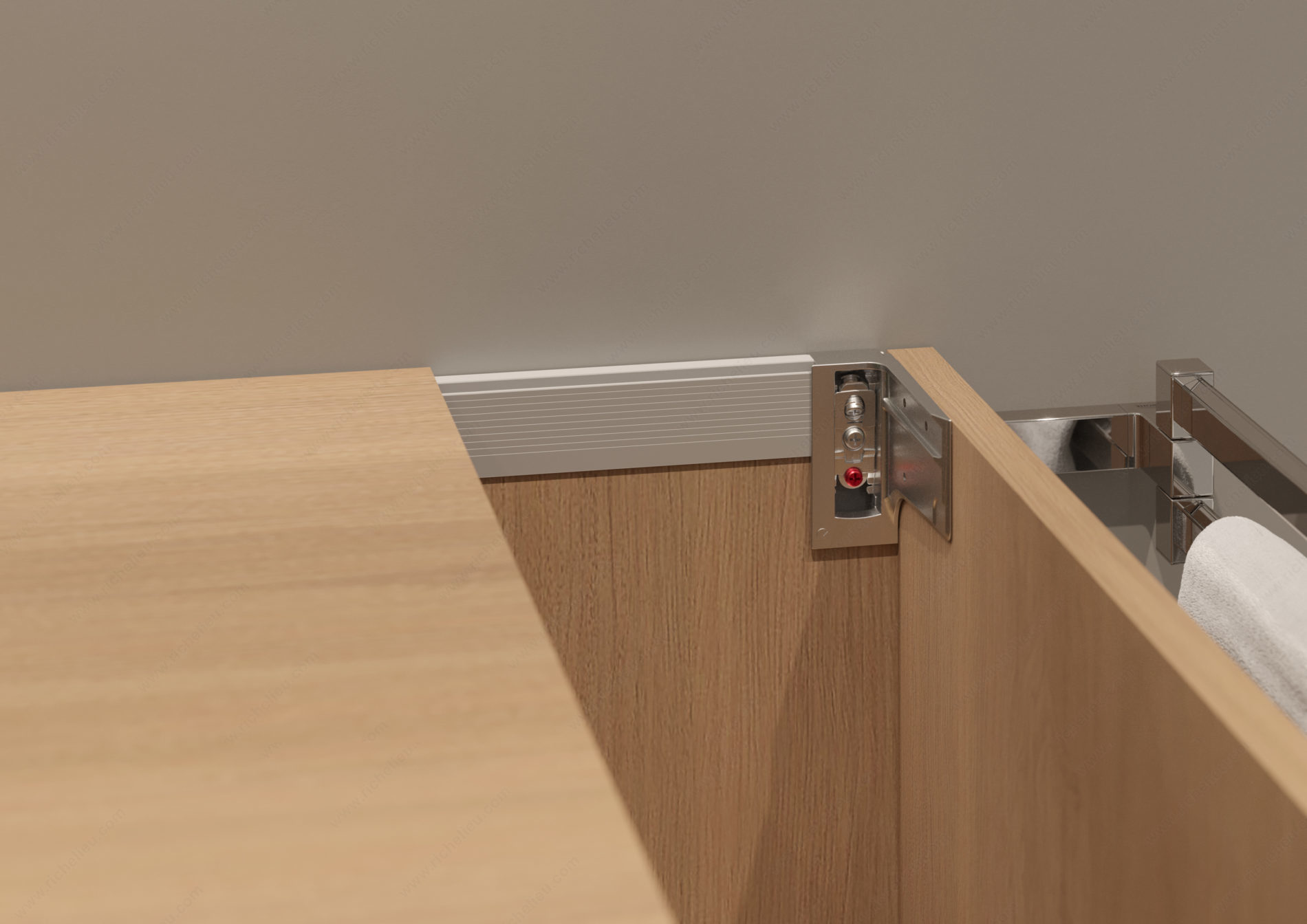 Richelieu 670502032G Libra H7 Cabinet and Vanity Suspension System offers an innovative solution for wall-mounted cabinets, designed to support heavy loads and accommodate deep drawers. This versatile suspension system is the perfect choice for various applications, including kitchen cabinets, vanities, and commercial displays. With an impressive capacity of 485 lb, the Libra H7 ensures that your installations remain secure and reliable, even under substantial weight. The system features screw fixing for robust attachment, complemented by a locking screw for additional stability. Its steel construction guarantees durability and long-lasting performance, making it suitable for both residential and professional environments. The Libra H7 allows for fine-tuning, thanks to its vertical adjustment capability of 1/2 inch and depth adjustment of 15/32 inch. This flexibility ensures a precise fit, accommodating variations in wall construction and cabinet design. Furthermore, the product meets RoHS standards, reflecting a commitment to safety and environmental considerations. Shipped via UPS, the Richelieu Libra H7 is an essential component for any cabinetry project, combining strength, adaptability, and ease of installation to meet the needs of builders and discerning homeowners alike.