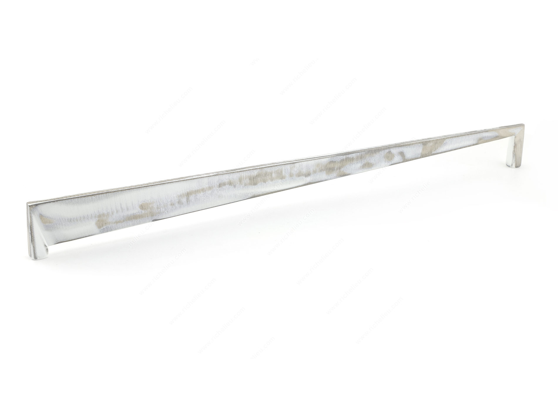 Richelieu 681132031 Modern Metal Pull - 6811 offers an exceptional blend of ergonomic functionality and striking aesthetics, making it a standout choice for contemporary spaces. Part of the Loft Collection, this pull embodies bold textures and robust shapes, effortlessly enhancing any cabinetry or furniture piece. With a center-to-center measurement of 12 5/8 inches, this pull is designed for optimal grip and comfort. Its overall dimensions are 12 7/8 inches in length, 1 3/16 inches in projection, and 11/32 inches in width, ensuring a substantial yet sleek profile. The brushed industrial white finish adds a sophisticated touch while maintaining a modern edge, perfect for kitchens, bathrooms, or any living space. Constructed from durable metal, the Richelieu 681132031 pull is built to withstand daily use while offering a trendy design element. Installation is straightforward, thanks to the included M4 screws. This pull not only serves a practical purpose but also acts as a statement piece that elevates your interior decor. Whether you are a building professional or a discerning homeowner, the Richelieu 681132031 Modern Metal Pull is an ideal choice for those seeking quality and style in their hardware selections.