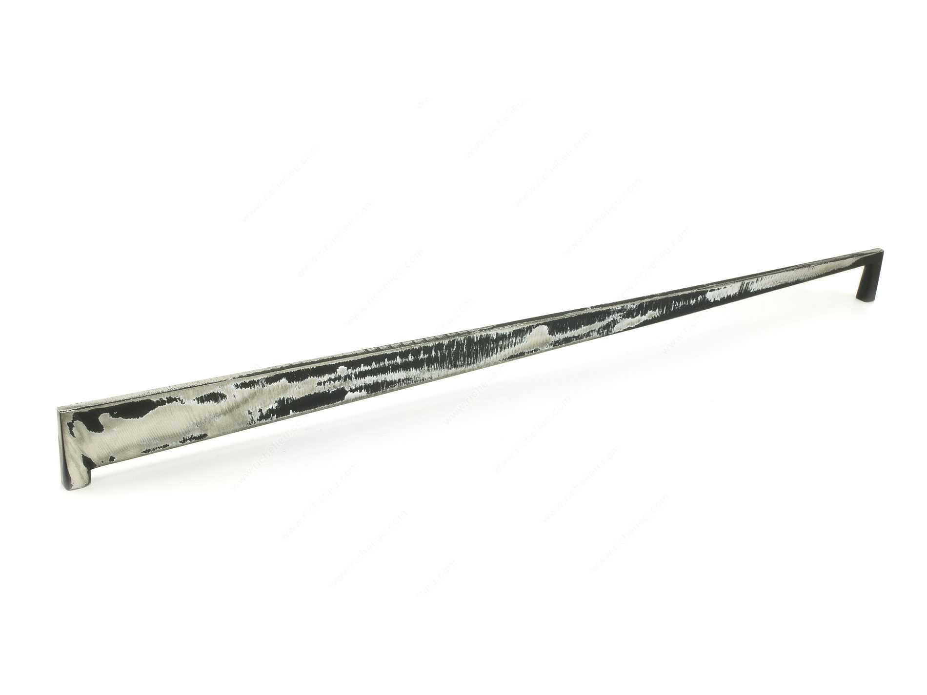 Richelieu 681144894 Modern Metal Pull - 6811 showcases an ergonomic design that perfectly blends aesthetic appeal with functionality. Part of the Loft Collection, this pull exhibits bold textures and robust shapes, making it an ideal choice for contemporary spaces that demand a touch of sophistication. Crafted from durable metal, the pull features a striking brushed industrial black finish, which not only enhances its modern appeal but also ensures longevity. With an overall length of 18 inches and a center-to-center measurement of 17 5/8 inches, it provides ample grip while maintaining a sleek profile. The pull's projection measures 1 3/16 inches, allowing for easy access without compromising on style. This product is thoughtfully designed for easy installation, including M4 screws that come with the pull, making it a hassle-free addition to cabinets or drawers. At a width of just 11/32 inches, it fits perfectly into various design schemes, offering a minimalist touch that complements any décor. Whether you're a building professional or a discerning homeowner, the Richelieu 681144894 Modern Metal Pull promises to elevate your interior design with its innovative blend of form and function.