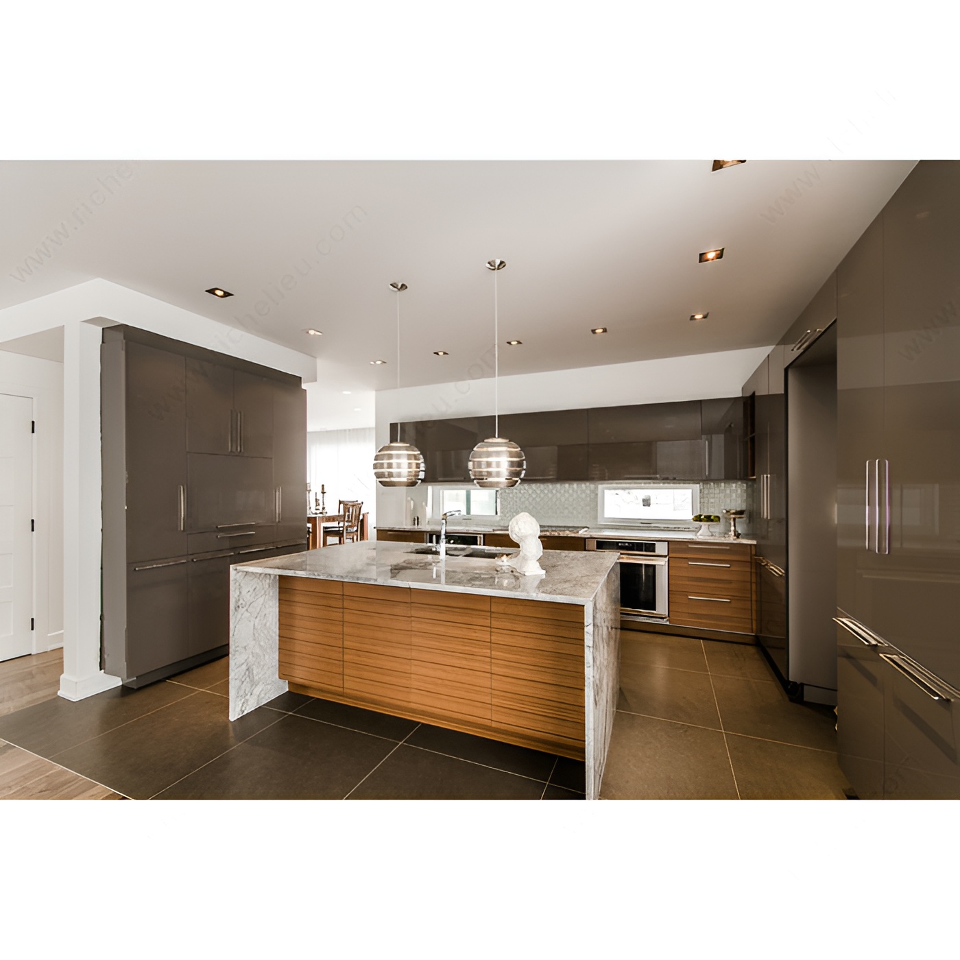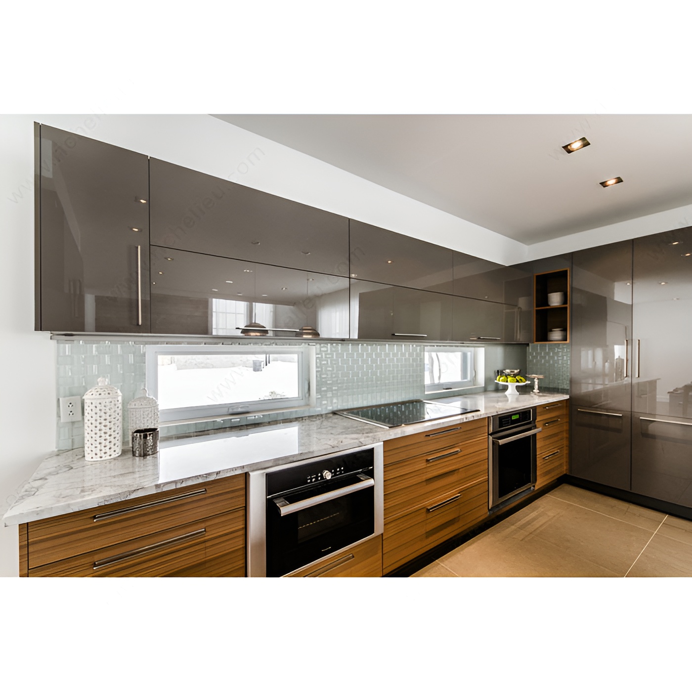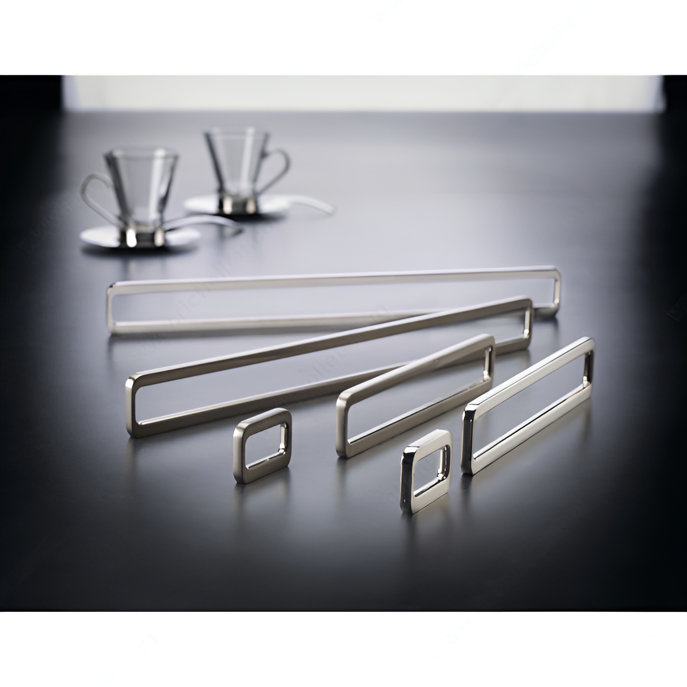 Richelieu 685320195 Modern Metal Pull - 685 offers a striking blend of contemporary design and functionality, ideal for enhancing various furniture pieces. This rectangular pull features a sleek hollow core and rounded corners, adding a modernistic touch to cabinets, drawers, and other surfaces. Designed with versatility in mind, the pull has a center-to-center measurement that ranges from 5 1/32 to 12 5/8 inches, accommodating a variety of installations. Crafted from durable zamak, it boasts a brushed nickel finish in a sophisticated gray and chrome palette, ensuring a refined look that complements any décor. The overall dimensions measure 13 1/8 inches in length, 1/4 inch in width, and a projection of 1 13/32 inches, making it comfortable to grip while maintaining a streamlined aesthetic. With a load capacity of 11 pounds, this pull is not only stylish but also reliable for everyday use. Each pull is packaged individually, and M4 screws are included for easy installation. As part of the Fusion Collection, the Richelieu 685320195 modern metal pull is an excellent choice for those looking to elevate their interiors with a functional yet stylish hardware solution.