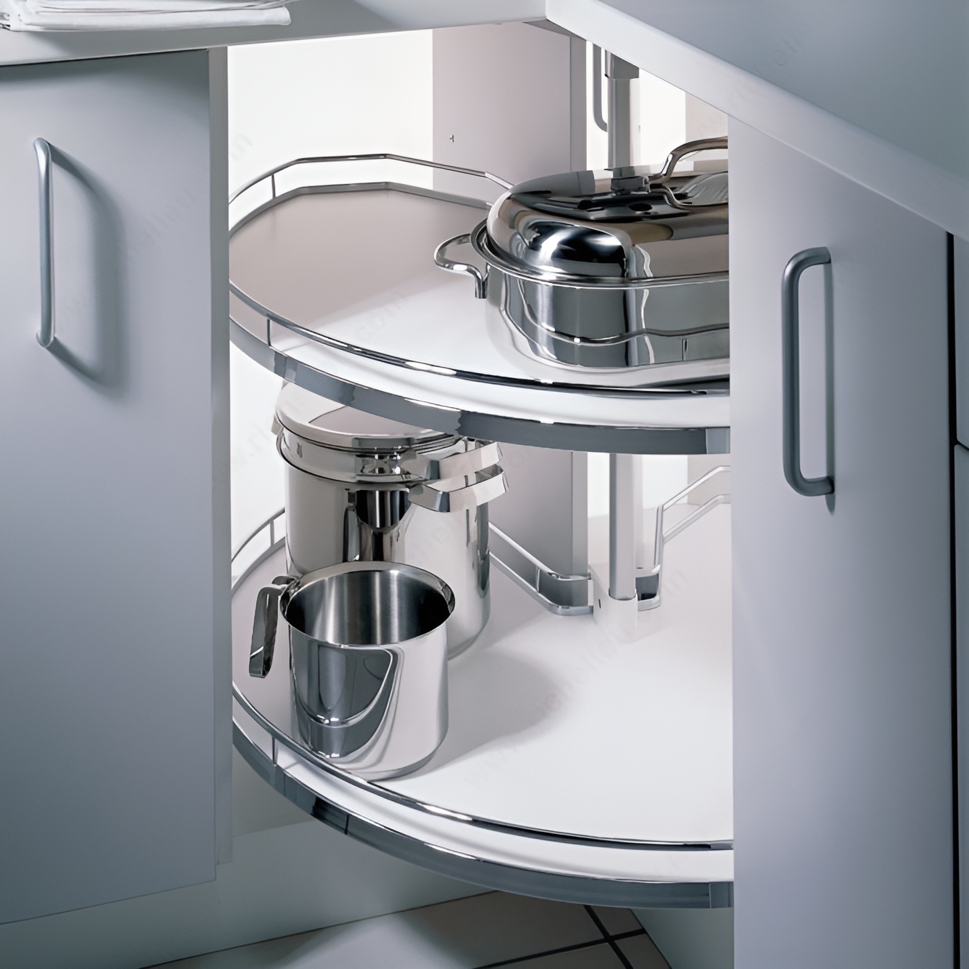 Richelieu 6863140030 Set of Two REVO US Trays offers a versatile and stylish solution for your REVO US system. Designed to enhance both functionality and aesthetics, these trays are finished in an elegant chrome and white combination, making them suitable for a variety of environments. Each tray boasts a generous diameter of 32 inches, providing ample space for organization and display. With a weight capacity of 55 pounds per shelf, these trays are robust enough to hold a variety of items, from kitchen essentials to decorative pieces. The interior dimensions required for installation range from 26 to 34 inches in height and a minimum width of 36 inches, ensuring compatibility with your setup. Constructed from high-quality melamine and metal, these trays not only offer durability but also easy maintenance. Their design seamlessly integrates into modern spaces, adding a touch of sophistication while serving practical needs. Ideal for those who value both form and function, the Richelieu 6863140030 Set of Two REVO US Trays is an essential addition to any home or professional setting. Plus, they conveniently ship via UPS for your ease of ordering, making them a practical choice for your next project.